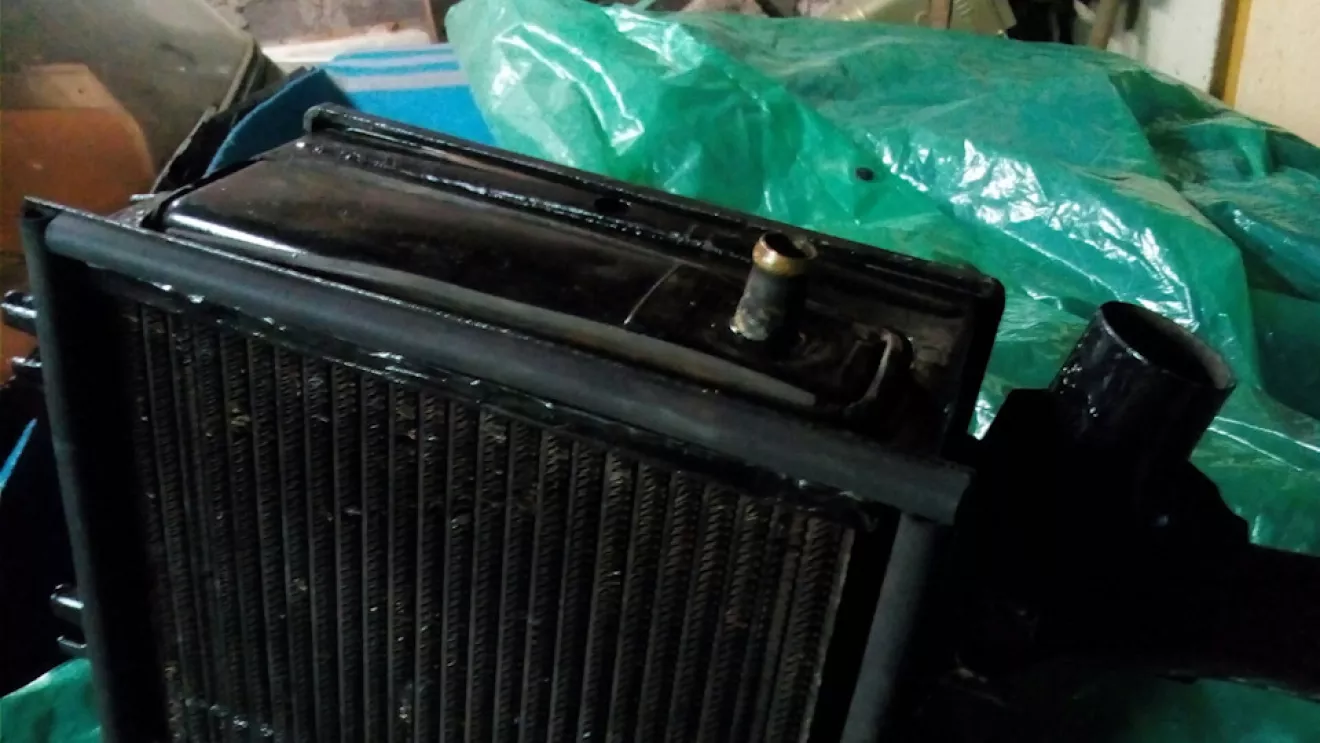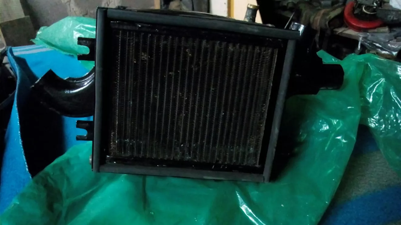 3. Промыл радиатор печки, сначала гарячей водой под давлением, потом залил наночь ацетоном, хдама выпало порядочно. Потом проверил давлением воздуха на целостность, была одна маленькая дырочка.