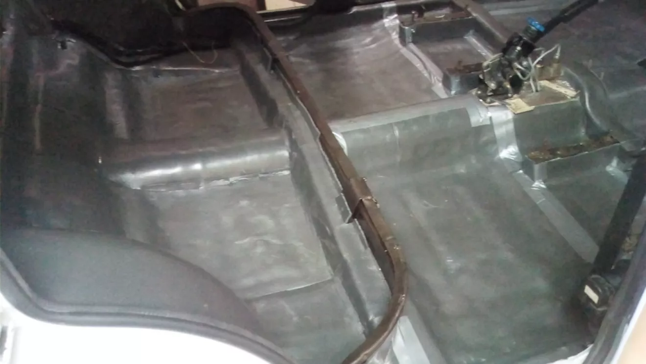 Привет всем кто следит за моим БЖ, в этот раз тема шумоизоляции. Заказывал в интернете уже давненько, материал похож на сплен, только мягче и тягучей ну и + самоклейка. А клеется реально сильно и ко всему подряд)) Заклеил все днище салона, и материал еще остался подумую багажник еще обклеить. Стыки проклеил герметизирующим армированым скотчем "момент", чтоб влага не попадала. На очереди ковролин. Ну и фото: