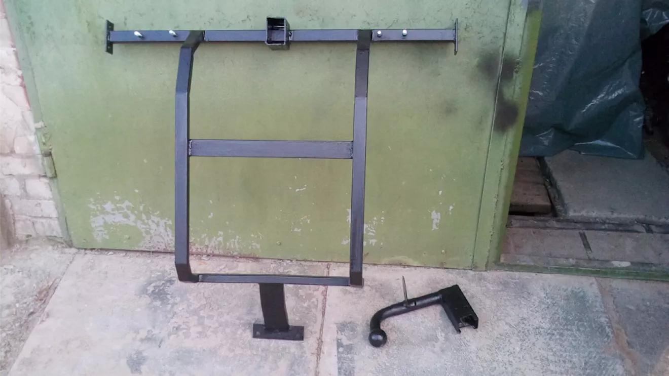 Решил пока есть возможность и разобранный багажник сорудить фаркоп. Покупка готового как вариант отпала сразу, сильно он висит сзади и хотелось чтоб шар был сьемным, решил заморочиться и зделал сам. Был куплен шар с крюком, профтруба и шынка толщиной 5мм. Ну а дальше все подгонками и как говориться на глаз было сварено. Потом все погрунтовал, покрасил и обработал велкором. Кстати чтоб не сверлить машину, крепление заднего номера сделал сьемное от получившегося фаркопа. По креплениям, перемычка к лонжеронам, и хвост в подьем где крепятся амортизаторы, ну и фото: