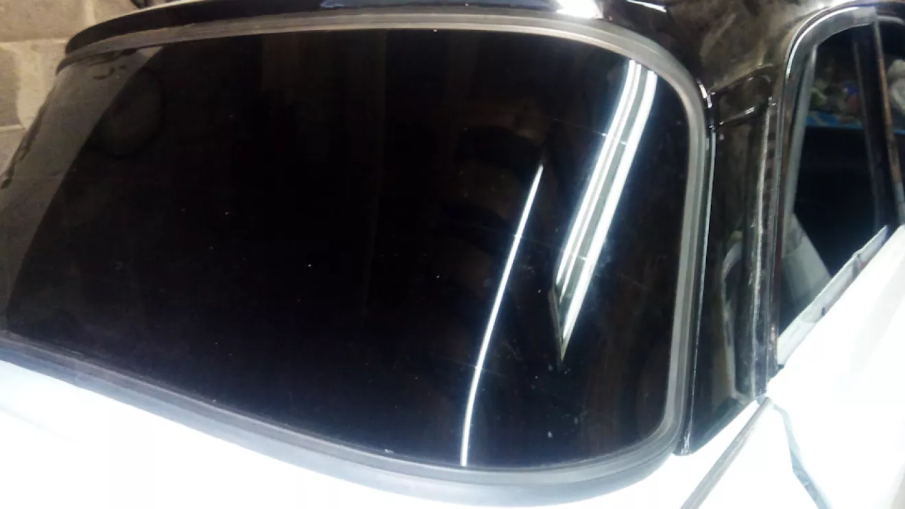 Так как потолок натянут пришло время устанавливать лобовое и заднее стекло, для этого заранее затонировал стёкла и купил новые уплотнители. Сначала попробовал сам, то так как уплотнители новые у меня ничего не вышло. В итоге устанавливали втроём, шнур мылом поехали. Стёкла установили но осталось ещё заправить резиновый замок. Для этого пришлось сделать спец. интструмент с помощью которого все зделал часа за два.