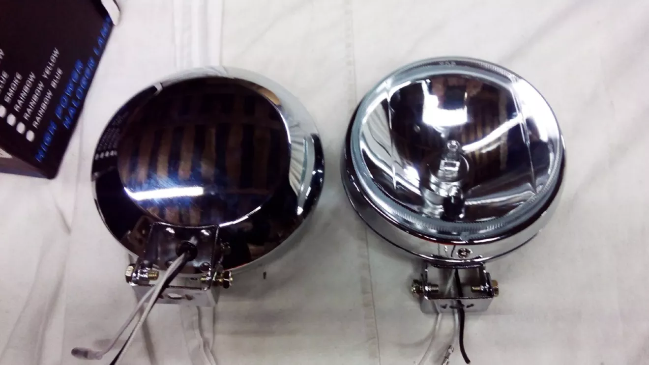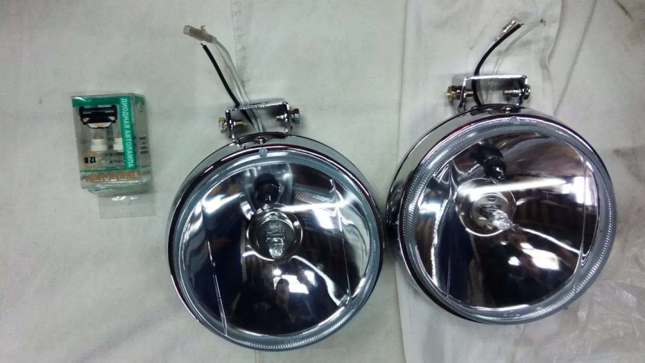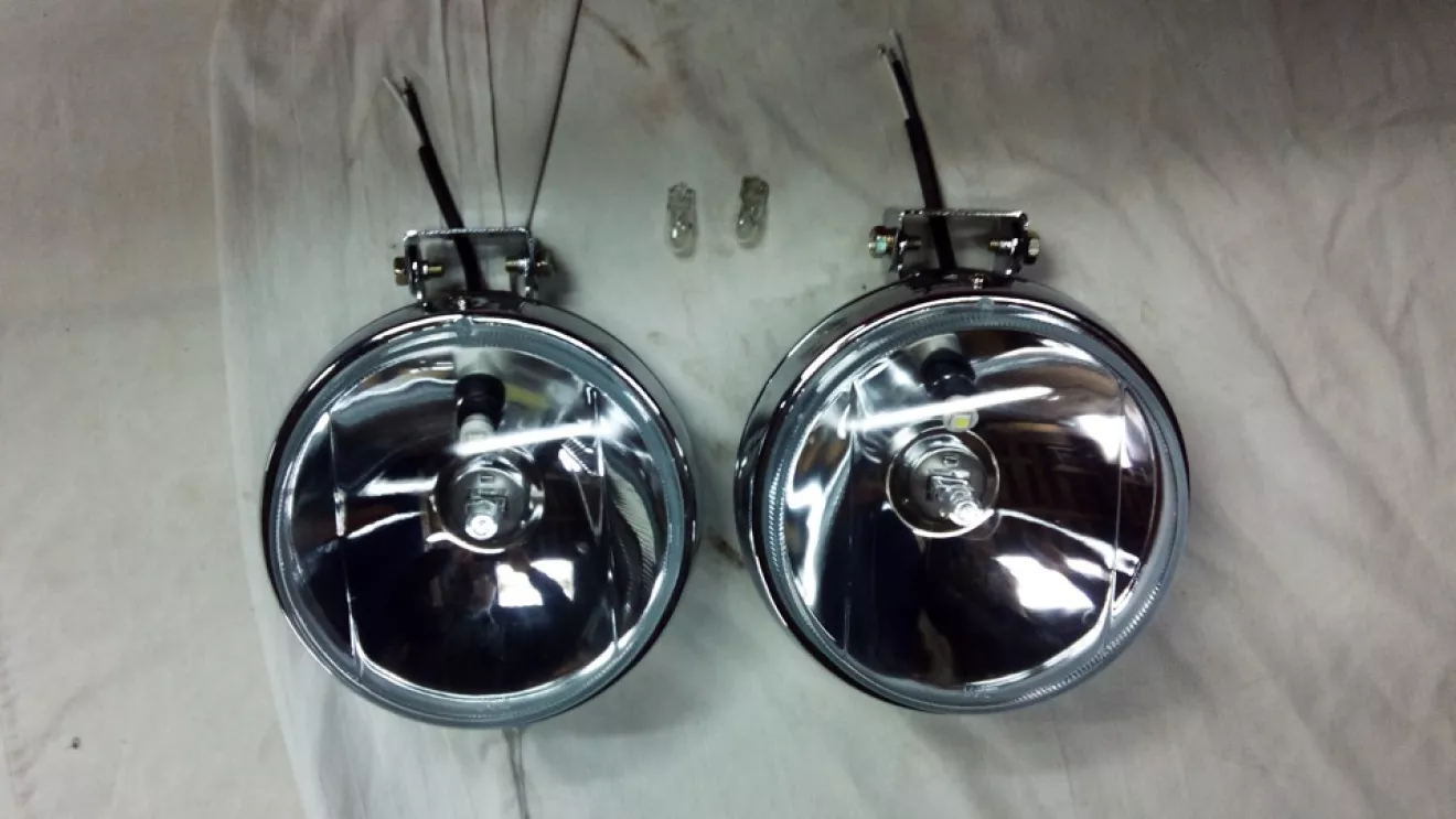 Так как сейчас занимаюсь прокладкой подкапотной проводки и сборкой морды машины, решил купить противотуманные фары, чтоб сразу сделать крепление для них и проложить провода. Долго искал подходящую оптику, чтоб соответствовала хром образу Москвича, и купил в просторах интернета ПТФ фирмы DLAA 1515W H3, так же в них встроены лампы габаритов так само как в основных фарах, остальное под фото)