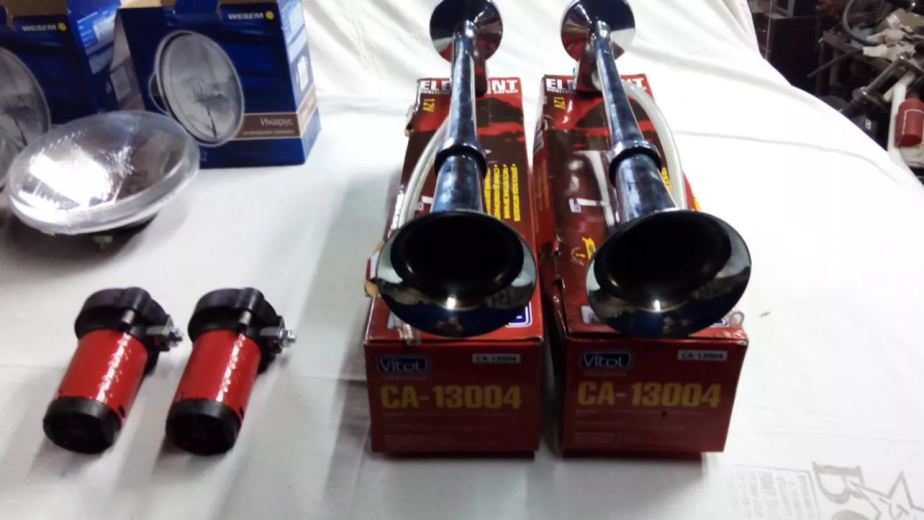 2.Звуковой пневмо сигнал У друга на джипе такой сигнал уже год стоит звук, что у фуры. Ну я на одном не остановился, заказал два. Установлю под передние крылья))