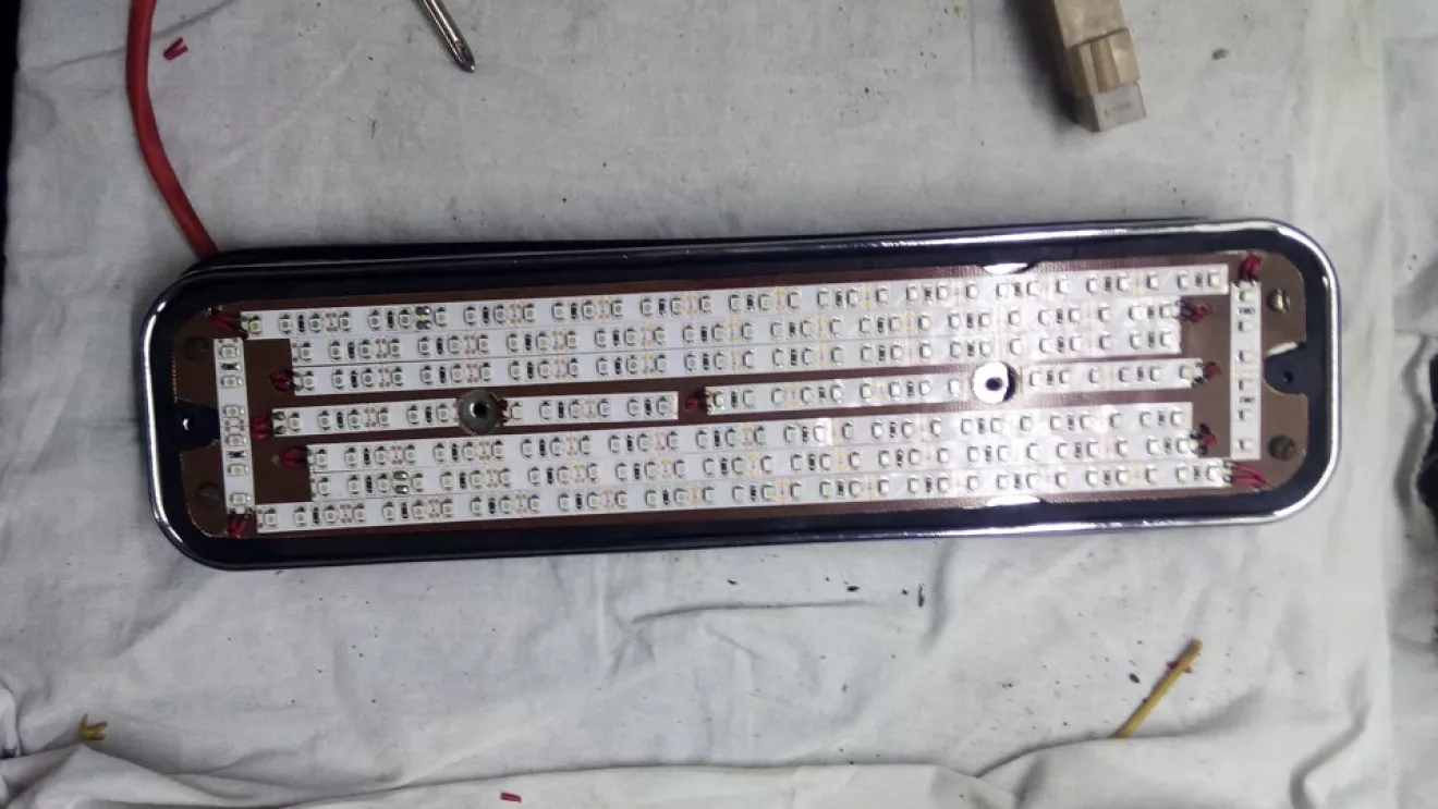 Начинал делать вместе с задними поворотами, а доделал только сейчас. В стеклах вместо белых вставок заднего хода, вклеил красные вставки, обрезаны с таких же стекол, потом стекла заматовал и умеющие люди покрыли автомобильным лаком (стали как новые)