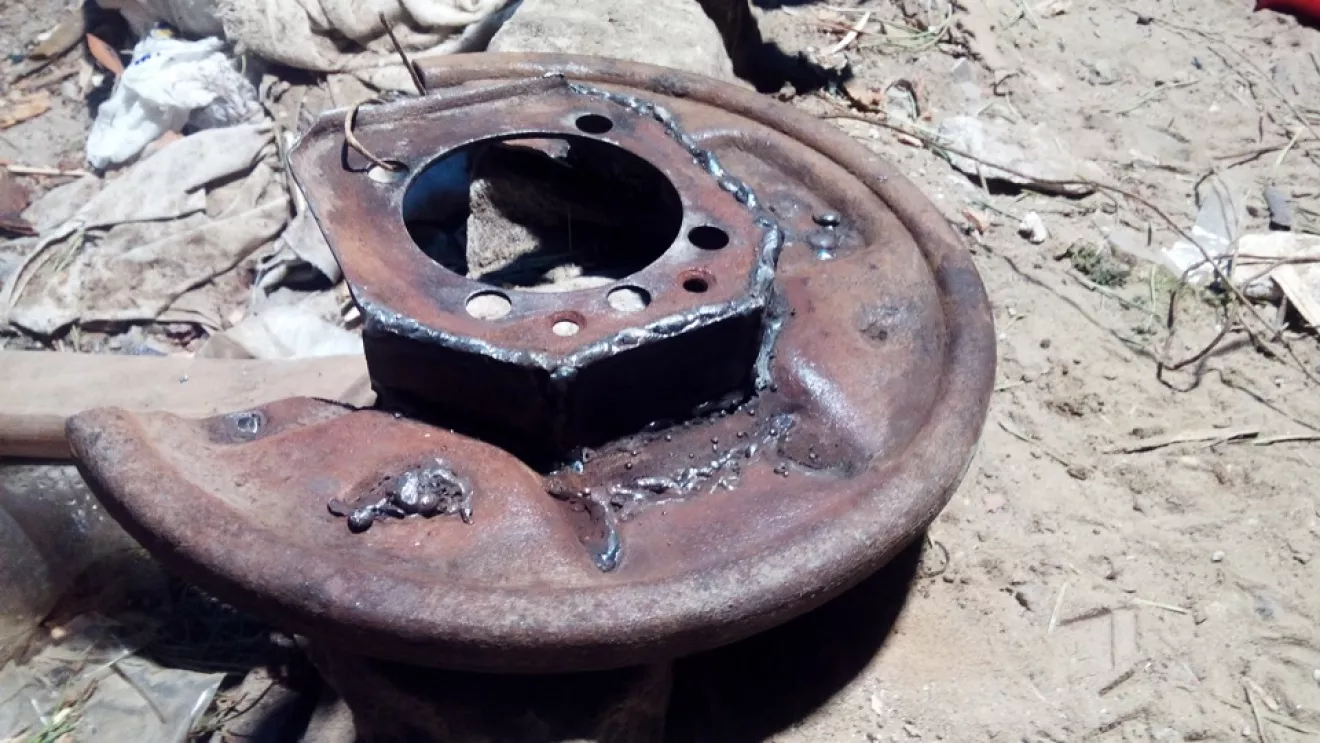 Сварка, болгарка — для переделки старого щитка тормозов в роль пыльника тормозного диска