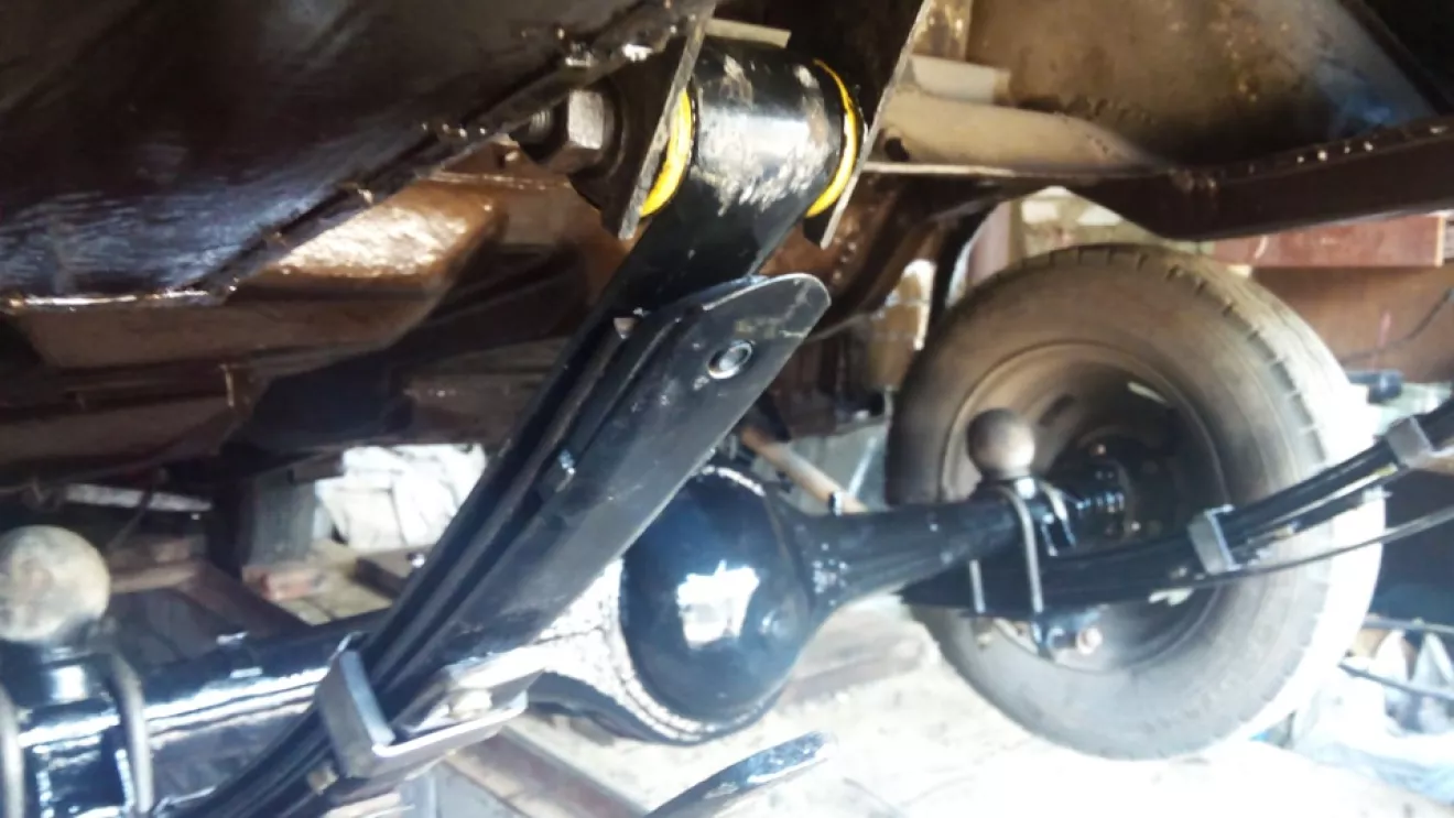 По задней подвеске ничего не переделывал пока просто все вычистил и покрасил, были куплены новые стремянки, весь этот пластик и хомуты на рессоры, полеуретановые втулки рессор, подшипники и сальники полуосей, ТАД в мост, короче все что можно было поменять поменял)) Фото ниже!