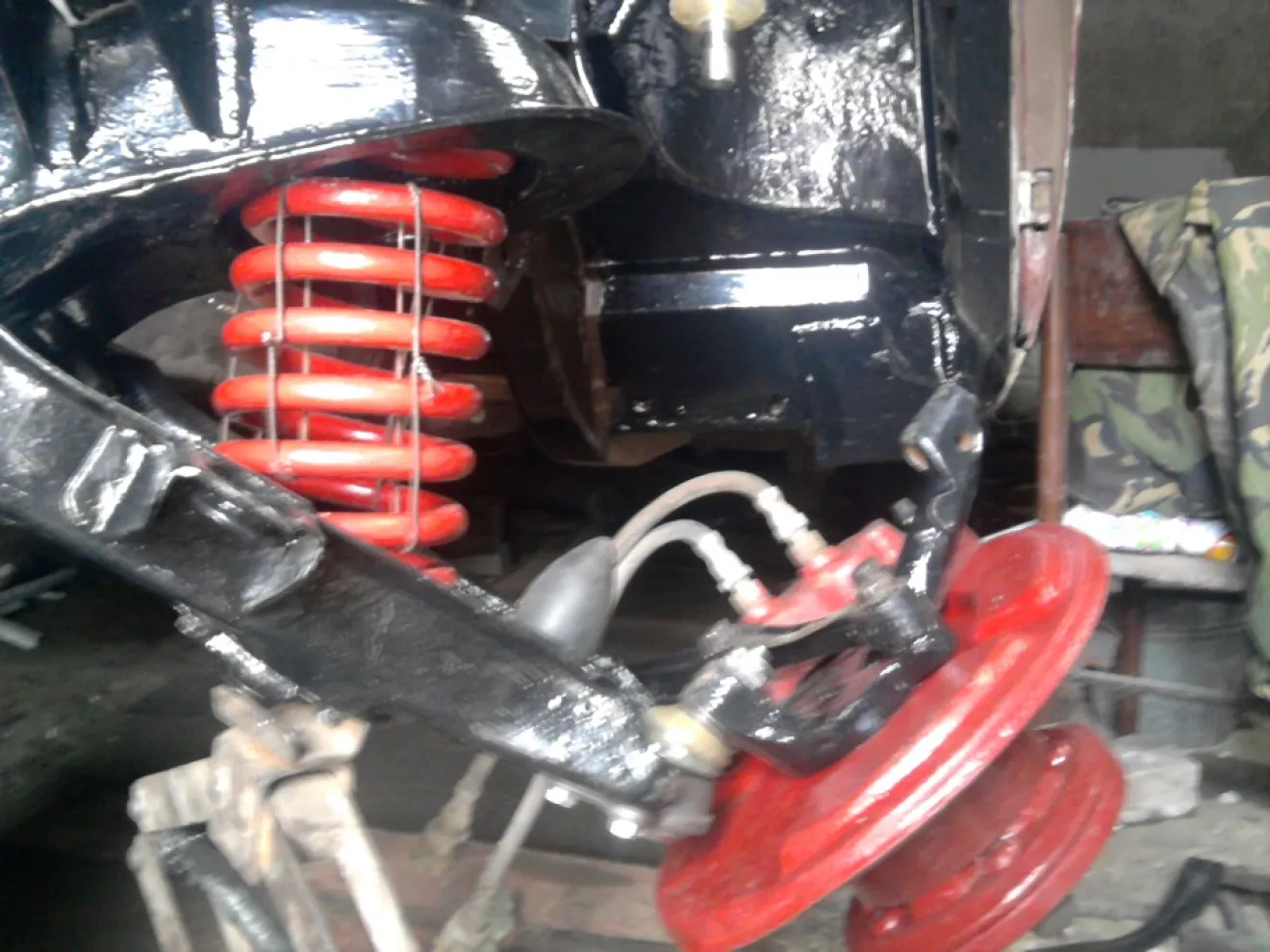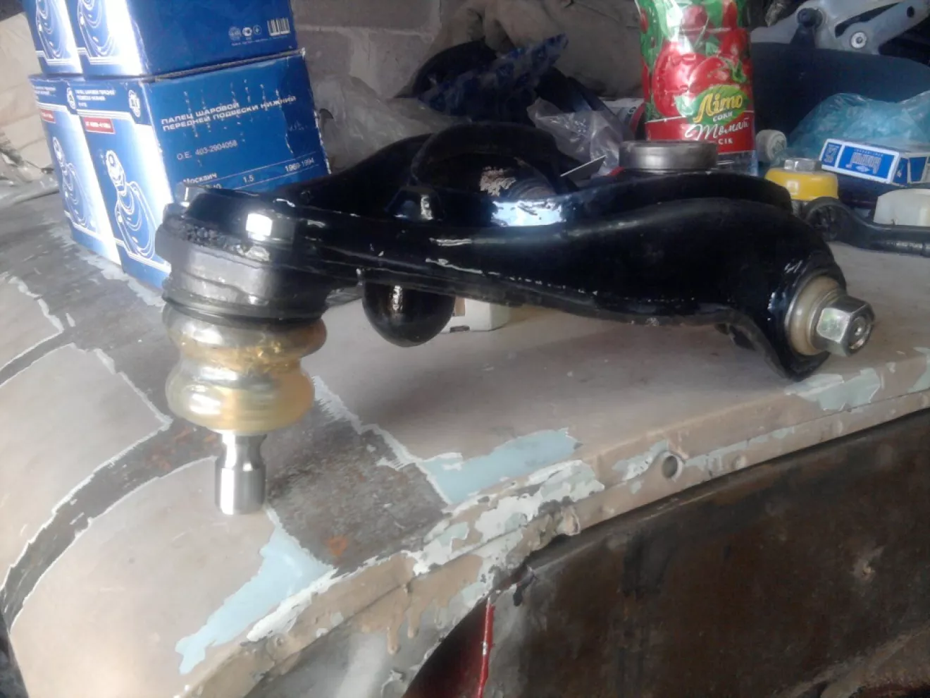 После сварочных работ решил перебрать переднюю ходовку, чтоб потом туда уже не заглядывать. С интернета заказал все расходники ходовки, снял балку и начал все это подготавливать, вычистил погрунтовал и покрасил балку, рычаги пружини, ну и по немногу собирать.