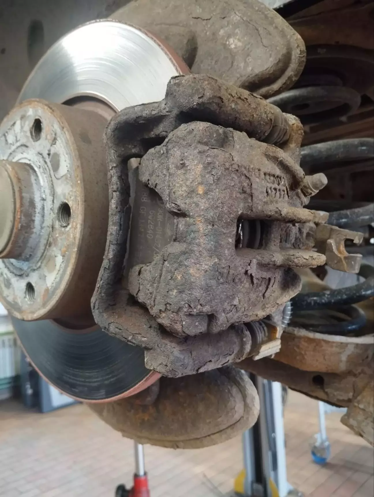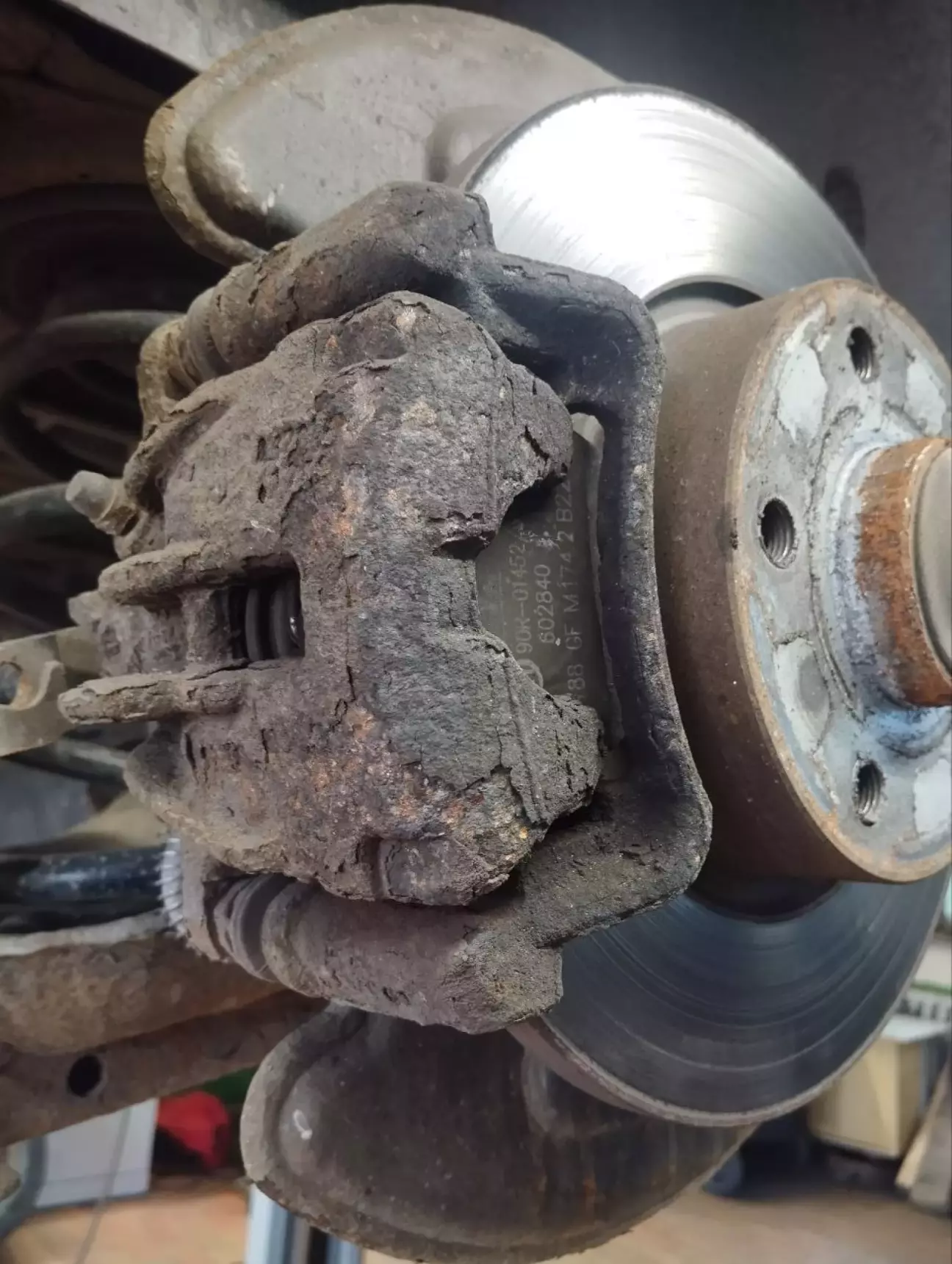 Всім привіт. Сьогодні трохі про то, як спочатку "затупив", а потім вирішив проблему з гальмами. А саме: коли восені 2024 міняв передні гальмівні супорта, диски та колодки на більш потужні, зіткнувся з тим, що іноді при гальмуванні був скрип. Я був дуже здивований та раздратований, бо все було нове. Поїздив по Україні, а потім авто переїхало до Німеччини. Весь цей шлях скрип не зникав. Я сподівався що за декілька тисяч км, все приробиться та буде гаразд, але ні... Після приїзду навіть придбав нові колодки та поміняв. Але нічого не змінилося. Тут хочу додати що коли купляв колодки, то придбав відразу на передні та задні гальма. Але коли подивилися - на задніх залишок ще був досить гарний (як я собі вважав), тому тоді я не став їх міняти. Тому вони так й приїхали новенькі разом з авто. Я навіть навесні 2025 року отримав німецький TUF, без заміни))). Але то таке. Нещодавно придбав Jeep Compas 4х4 з дизельним двигуном Мерседес. Тому що працюю в горах на СТО по обслуговуванню вантажних та снігоприбиральних авто, та ще й сам працюю водієм на цих авто. Іноді не міг виїхати з роботи, або доїхати до неї на Челику, бо снігу було досить багато. Тому Челік став в зимову сплячку майже на півтора місяці. Але коли я його пробудив, був неприємно здивований, що гальма стали "ватними". Було зрозуміло що в гальмівну систему потрапило повітря. Подивився що рівень в бачку впав, я поміркував що через стерті колодки він міг впасти та система "хапанула" повітря. Вирішив поїхати на роботу та ретельно подивитися в чому проблема. А перед тим помити авто. Помив, все гаразд, почав витирати, та чомусь вирішив подивитись на задні гальмівні колодки. А там..... А там їх немає. Як то кажуть чоботарь без чобіт. Відразу знайшов новенькі, які треба було міняти восені 2024 року. На роботі підняв авто, зняв колеса та побачив