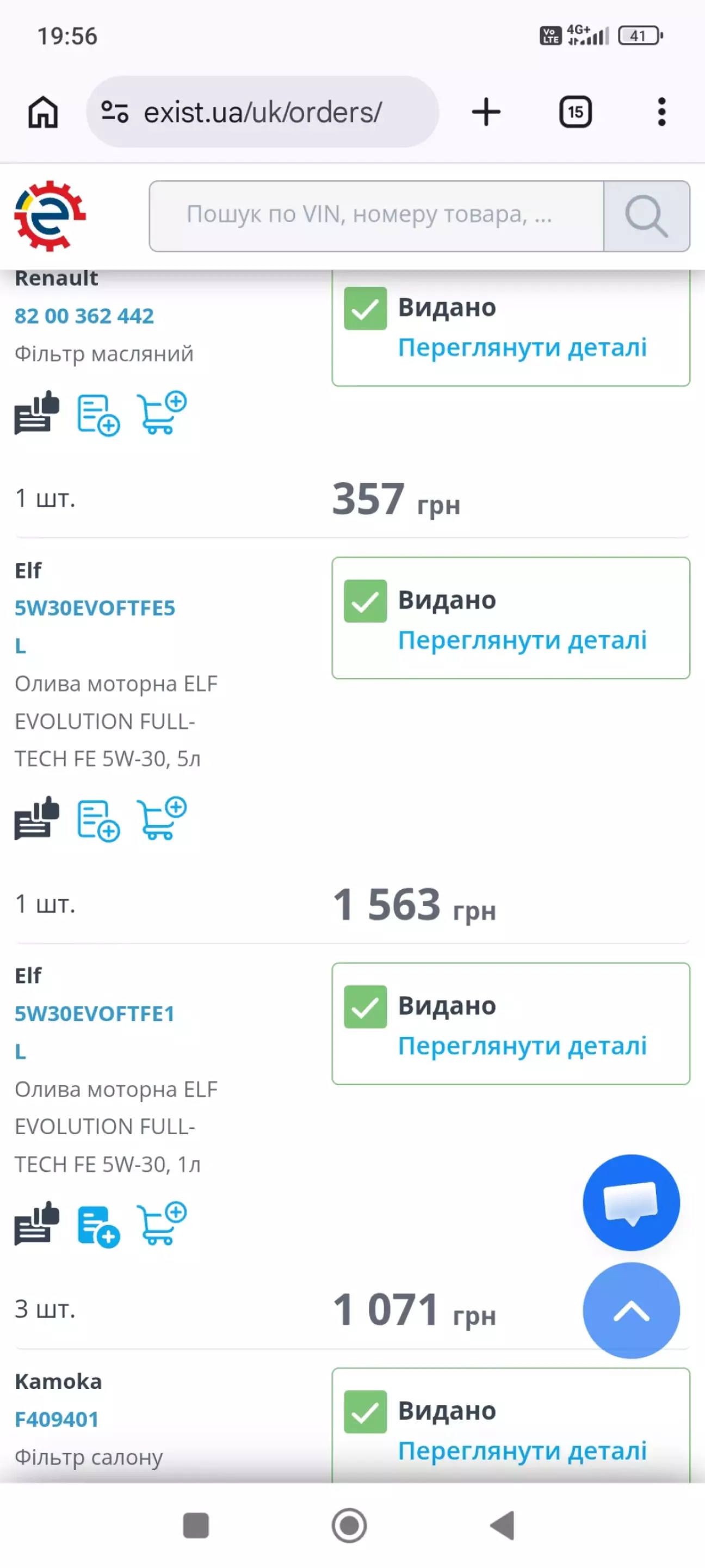 Було придбано олива ELF 5W30 5л. +3 по 1л.(1563+1071 грн.)