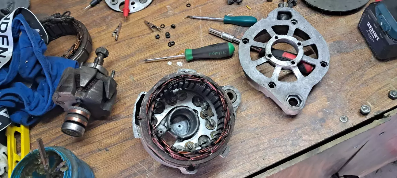 Генератори було повністю розібрано, віддефектовано та зібрано Один, з двох. Одному якорю та одному статору-кінець. Також, замінив щітки.