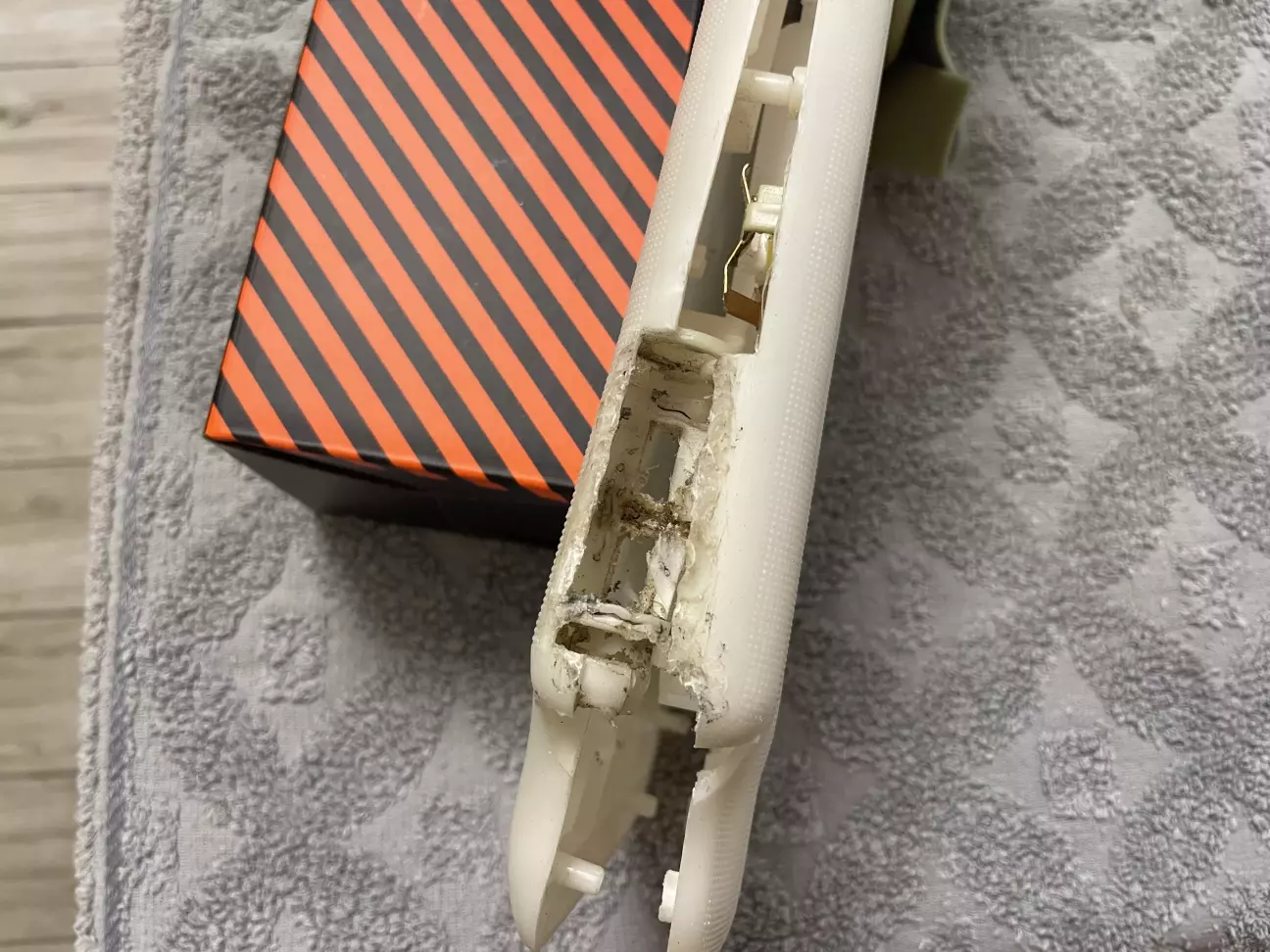 Після того як я його вскрив, я трошечки ….., від того чиї руки до цього туди лізли. Ну це і не новина, тому що попередньо власницею була дівчина, то му я відразу зрозумів чому стальна скоба була вже проварена 😃 але не суть будемо відновлювати …