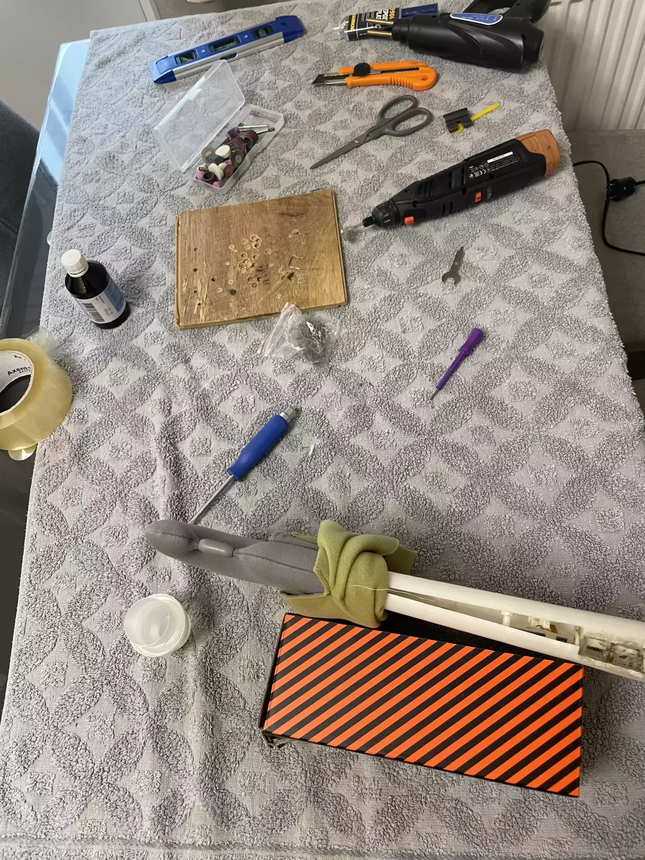 Все це діло я гарненько пропаяв зі скобами та залив клеєм…