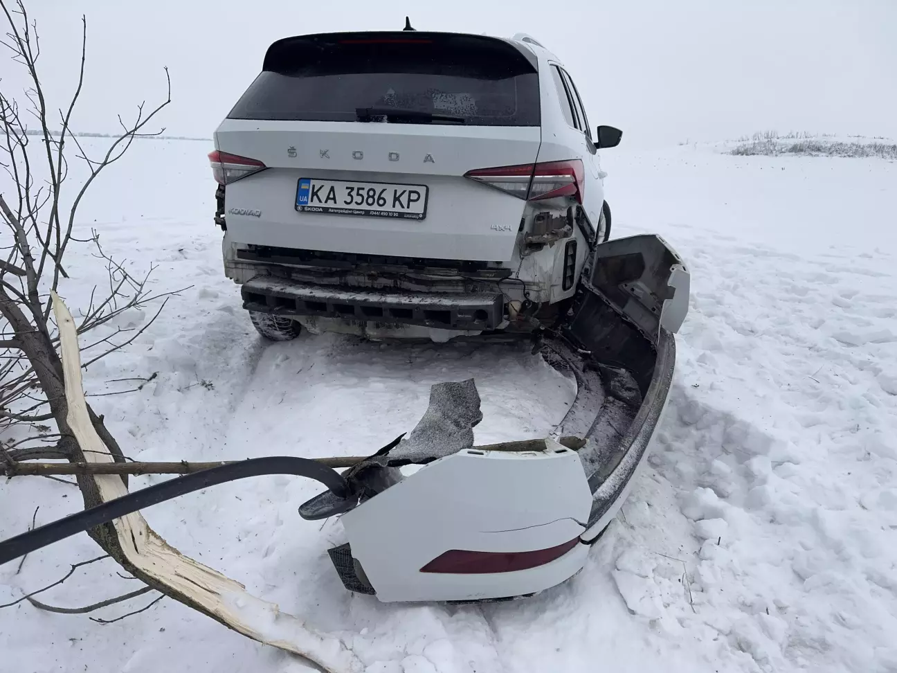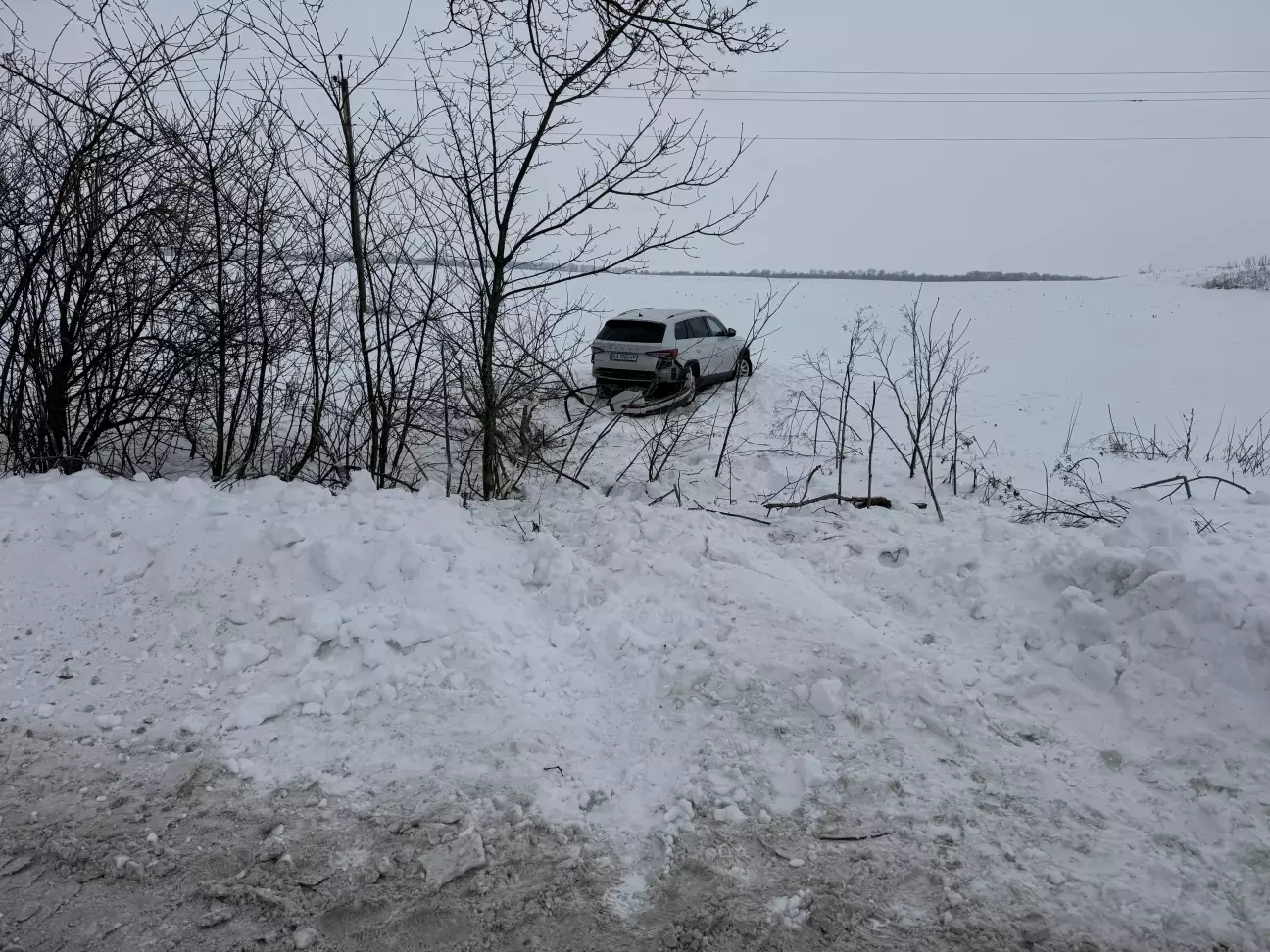 Кількасот метрів шляху, перед перехрестям нізвідки ледь не перед самим капотом авто зʼявився собака, дорога суцільний лід…