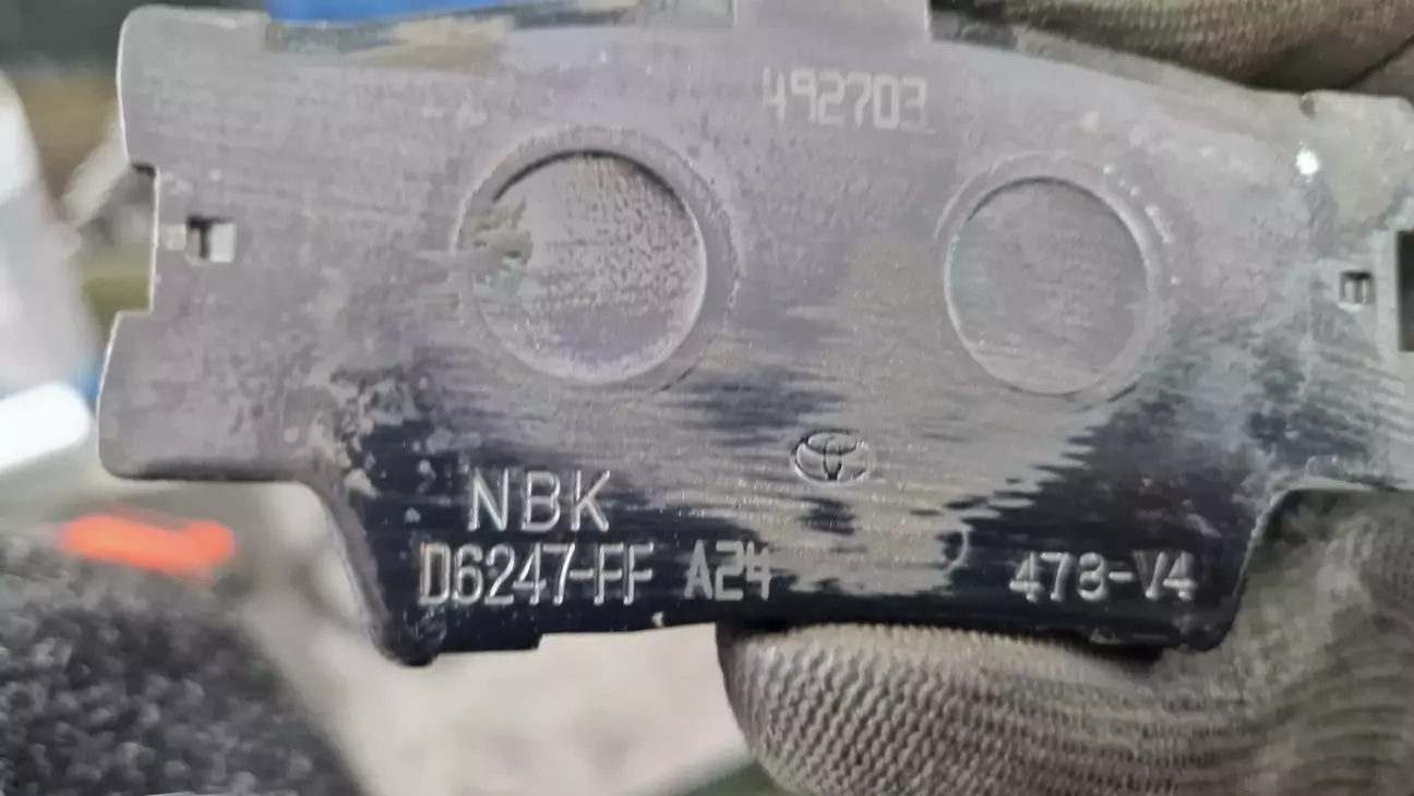 Коротко про історію: замінив в жовтні 2025 комплект оригінальних дисків і колодок при пробігу 104 тис. І почали вони люто скрипіти. Раз сім чи вісім офіційний дилер все там перебирав, рідину міняв, пильники комплект міняв, направляючі змащував і...все до дупи. Допоміг порадою сервісник з іншого (одеського) дилера і вказав, що колодки поставили "екологічні, де багато заліза в складі (і вони магнітяться)" (чорні на фото), а треба "нормальні" (сині на фото (не магнітяться)).