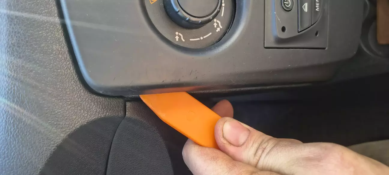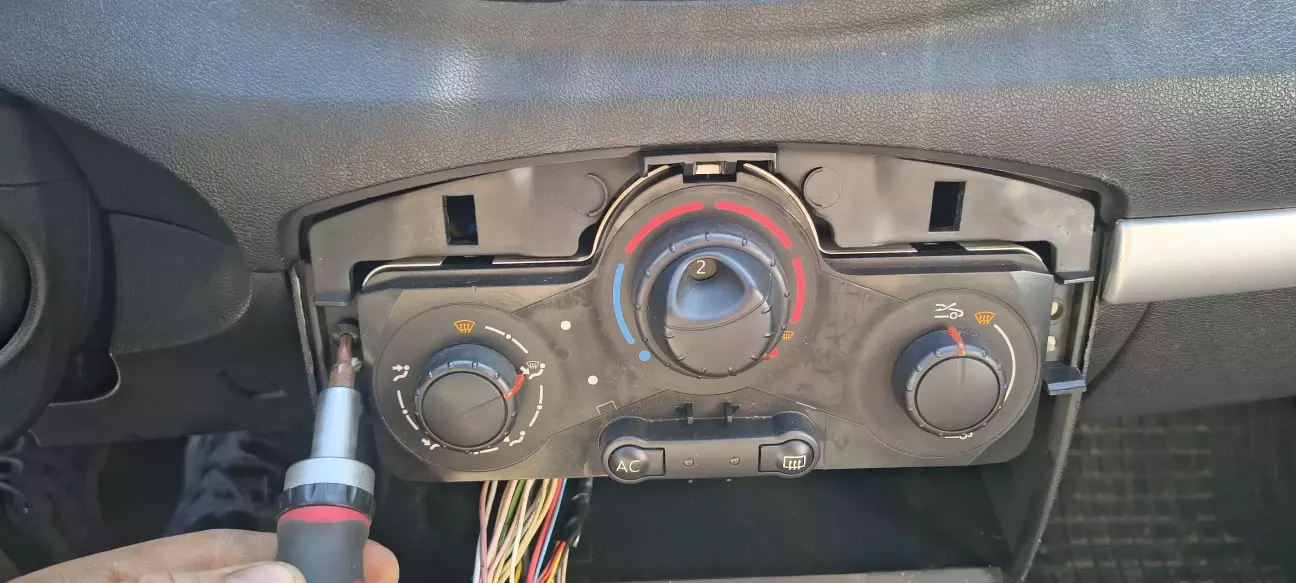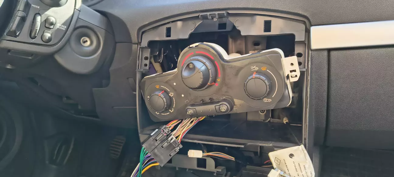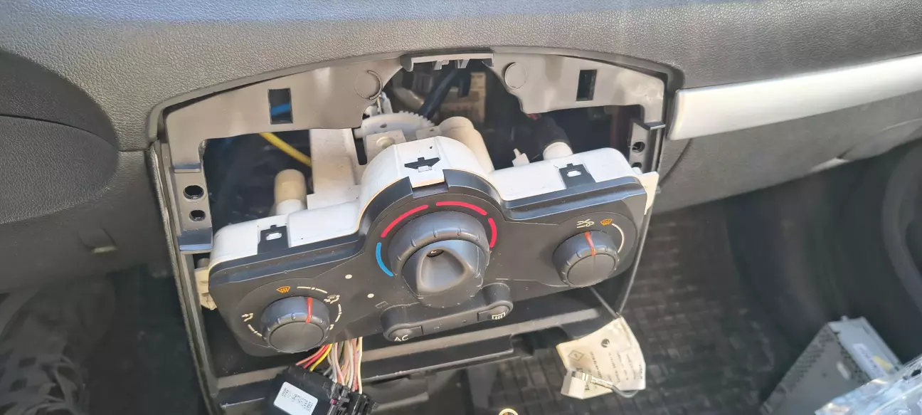 Далі знімаємо з посадкових місць блок клімату. Він нам буде трохи заважати протягувати провода.