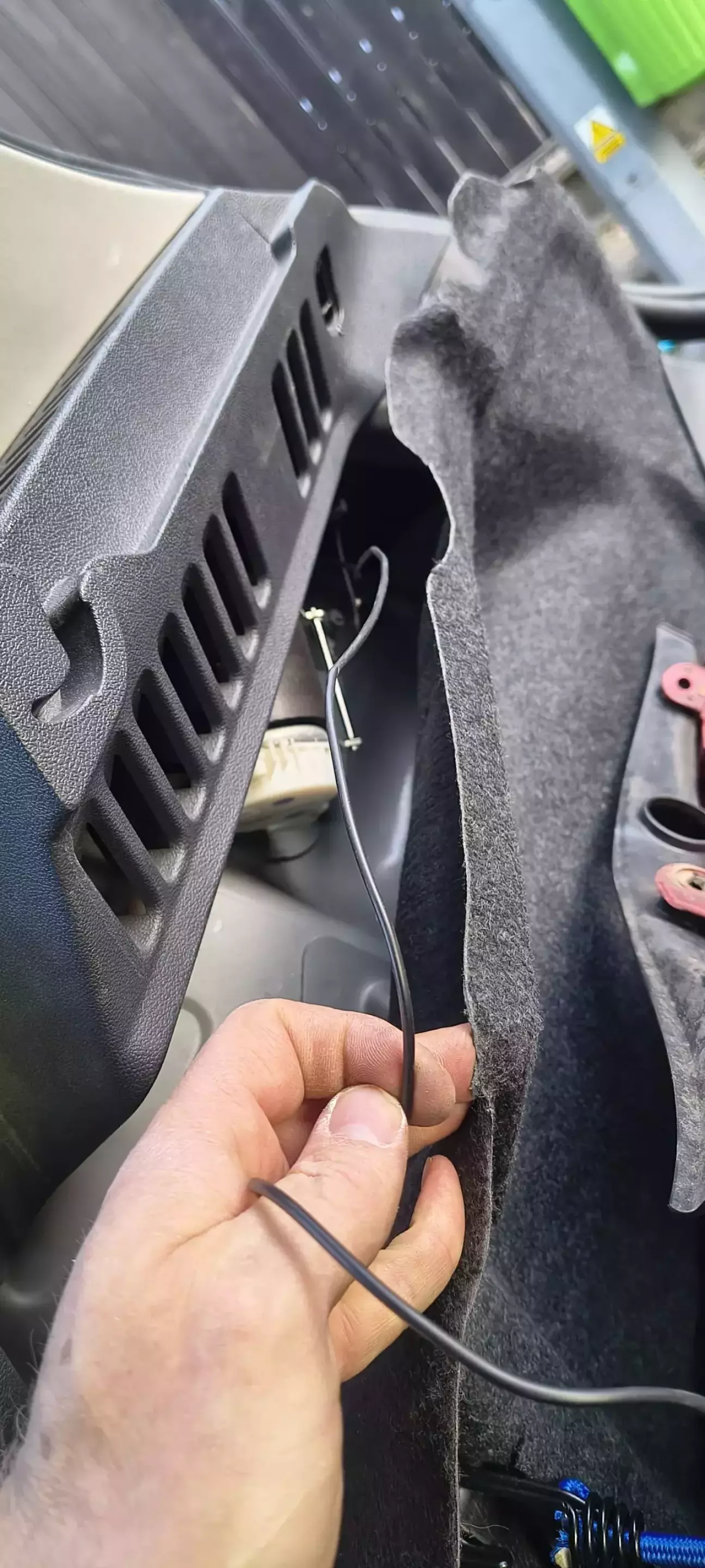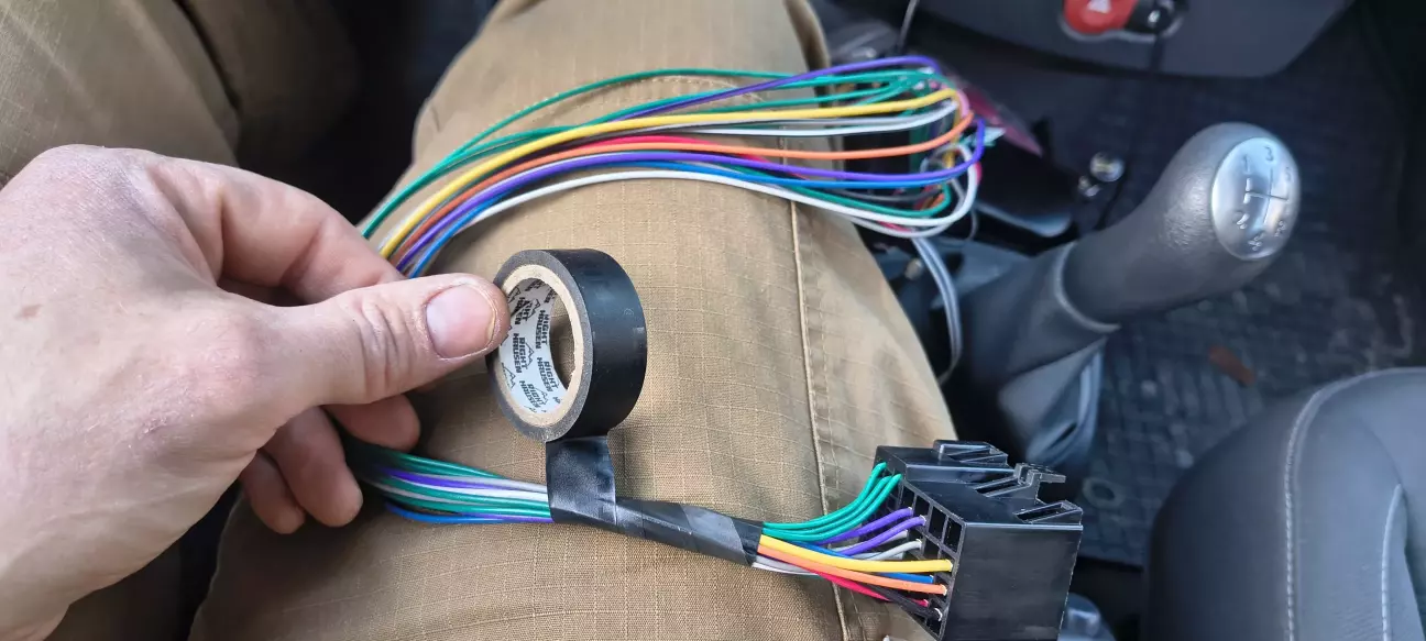 Трохи відігнувши обшивку повів провода до магнітоли по правому низу машини.