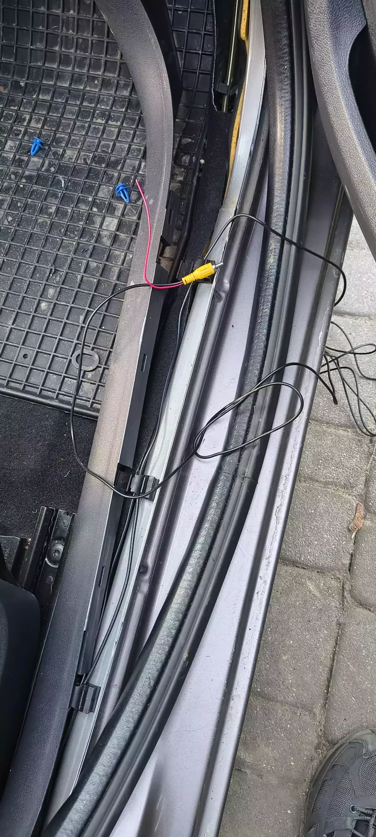 Спочатку через плафон підсвітки номеру завів провід від камери до заднього правого фонаря.