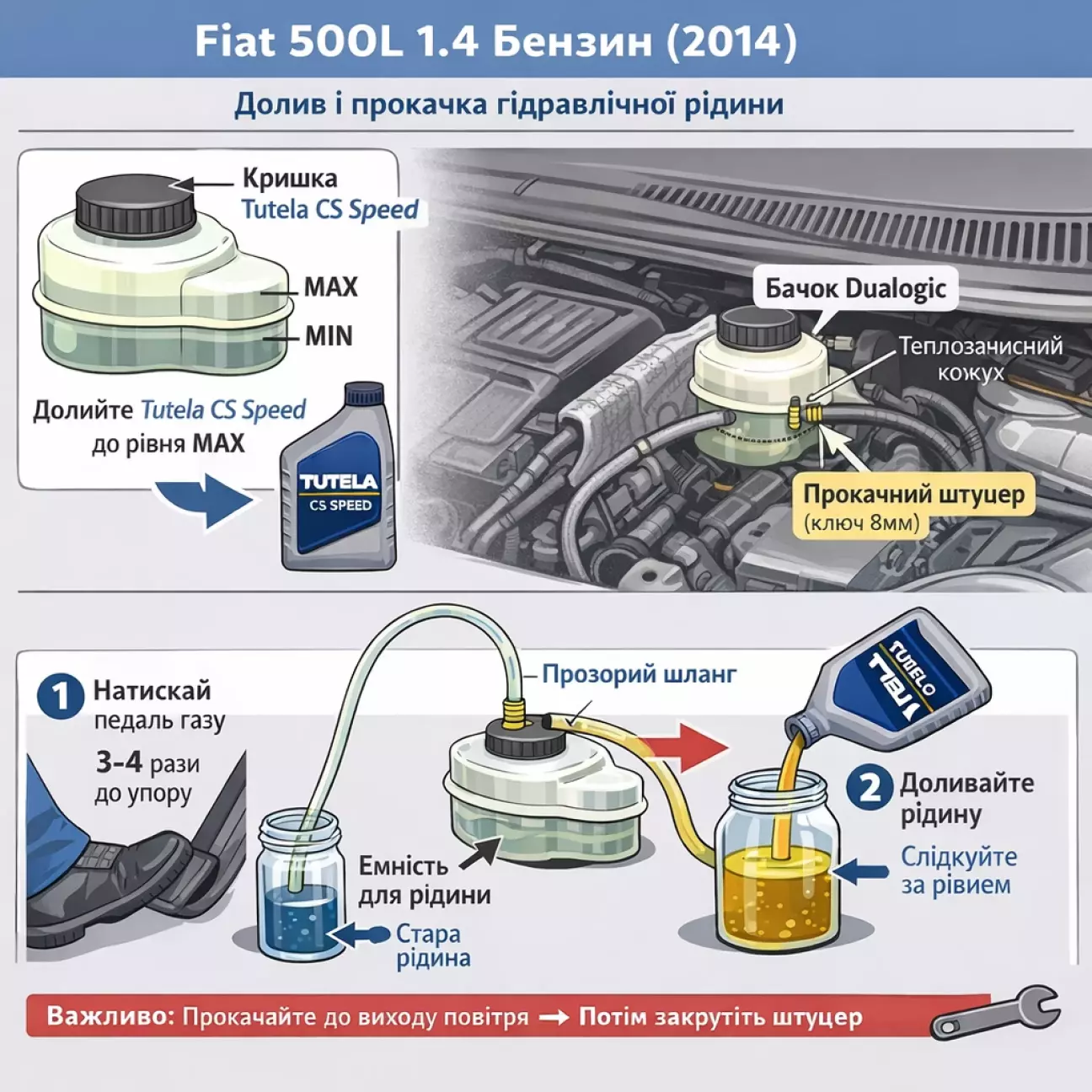 Спочатку хотів придбати цю гідравлічну рідину і самостійно замінити її. Чат жпт схематично показав це отак. Рідину необхідно прокачати, а не просто долити.