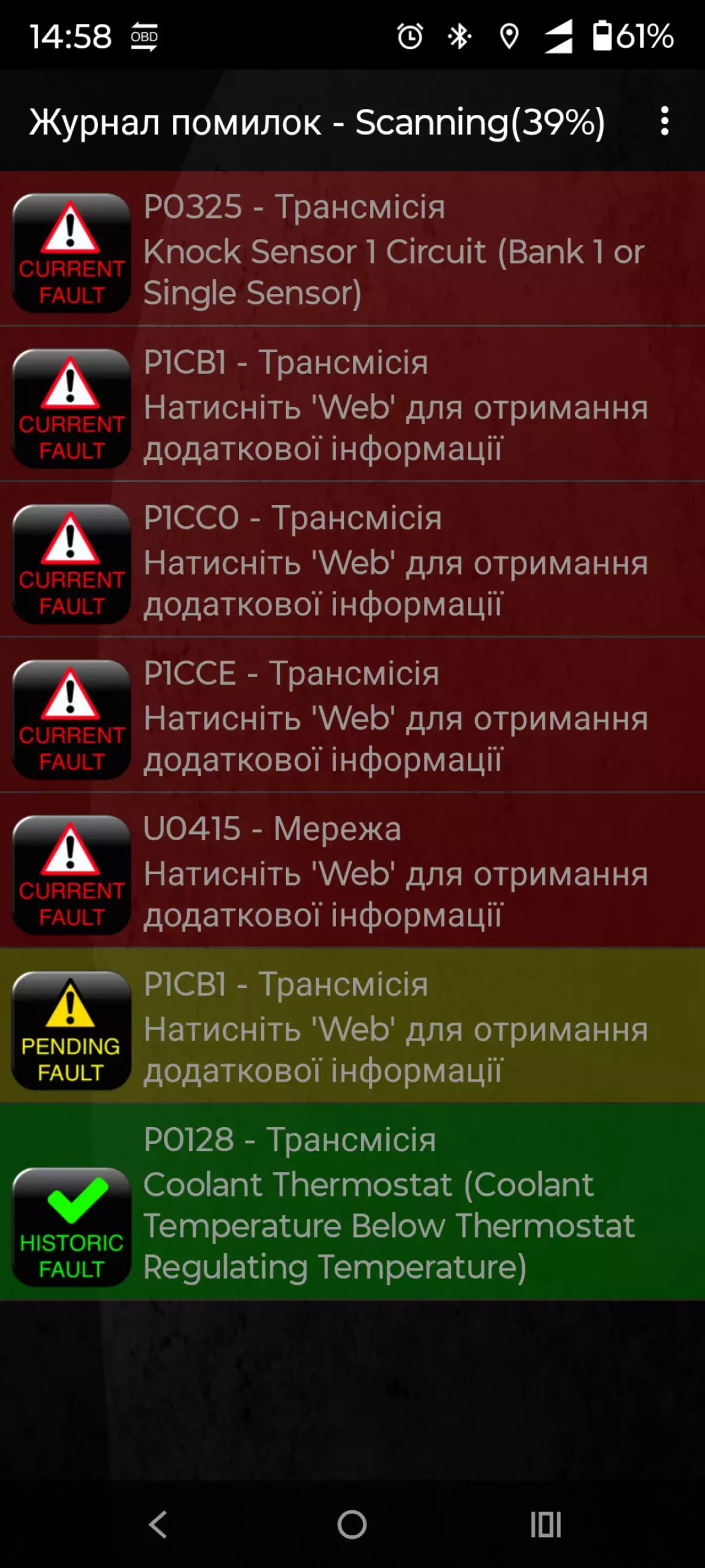 Отже наряду з печально відомою помилкою P0325 (детонація), маю ще отаку гірлянду: