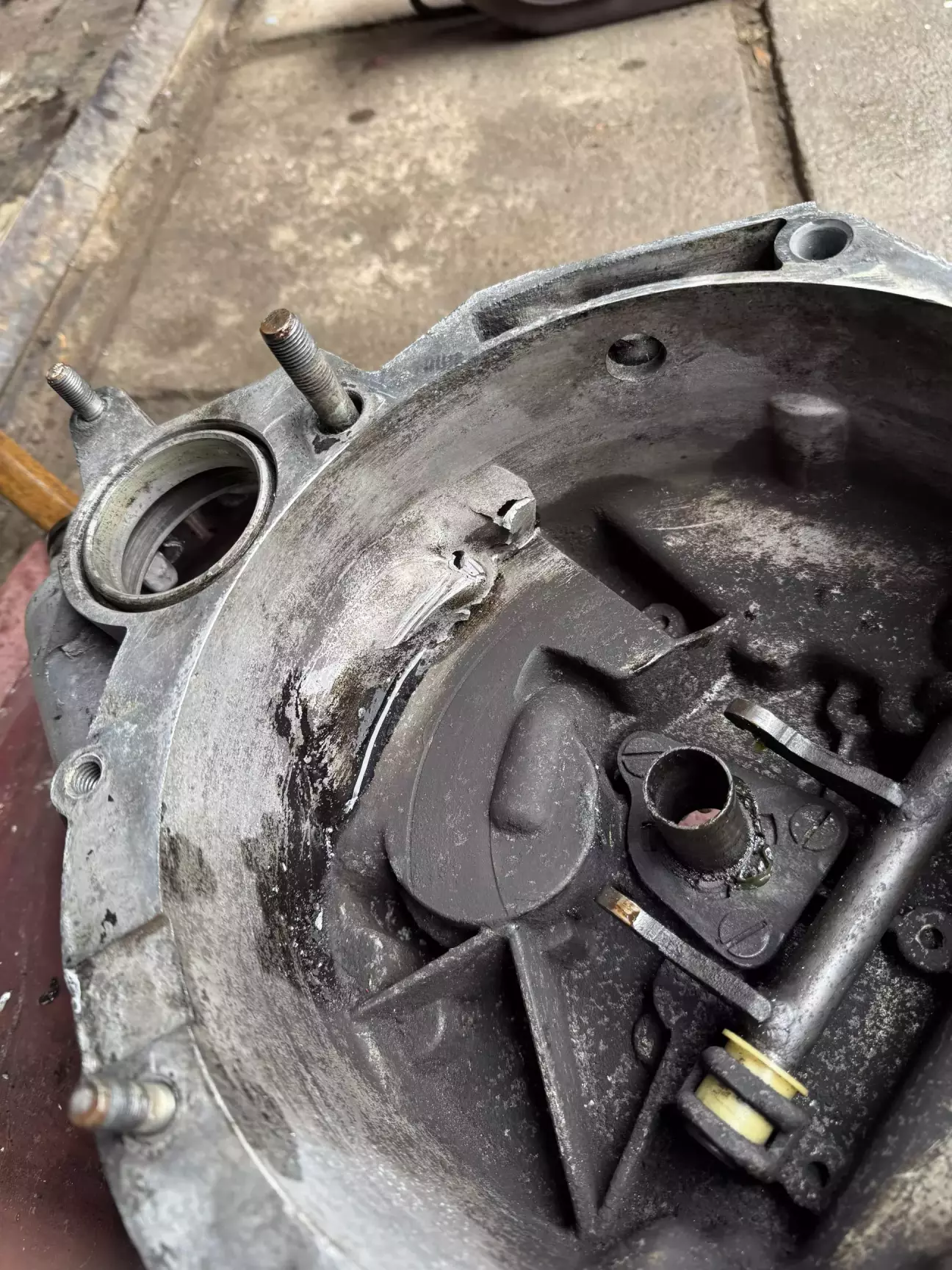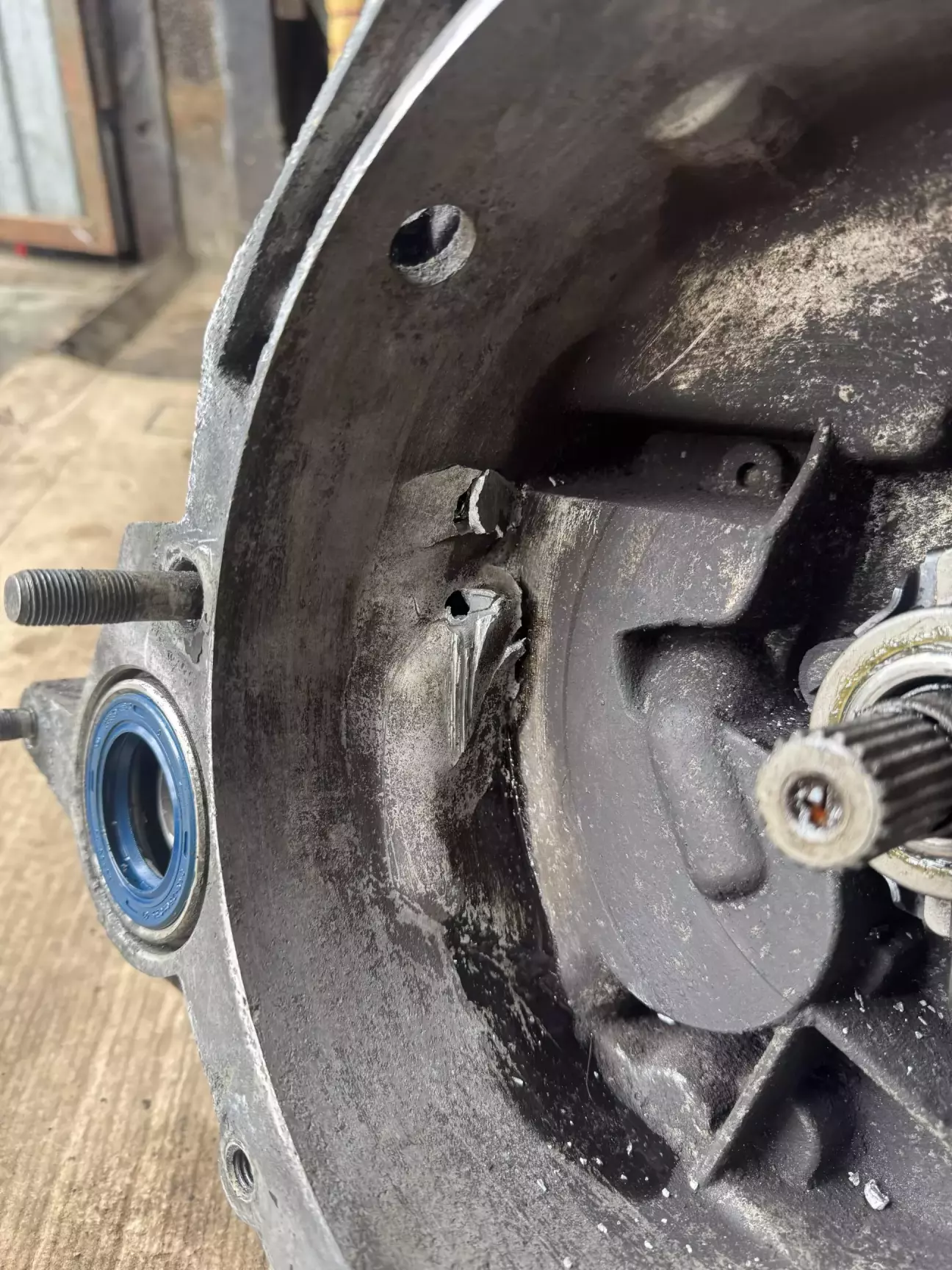 Всім привіт, 4 лютого Таврійка була вже дозібрана і вже був перший запуск, пропрацювавши на холостому біля години часу хотів виїхати з гаражу для того щоб трохи провітрити у ньому, і банально прибратись, і стикнувся з проблемою що передачі вмикаються але як тільки відпускаєш зчеплення зразу починала глохнути, думав що проблема в тому що коли збирав і мив коробку включив 2 передачі підряд бо на цих коробках це досить часто буває, попробував ще раз на кожній передачі відпустити зчеплення в моменті почув дуже жосткий звук, по фото далі можна зрозуміти що під час монтажу коробки з блоком перекрутились сателіти… коли вставляв полувісі я цього просто не замітив…