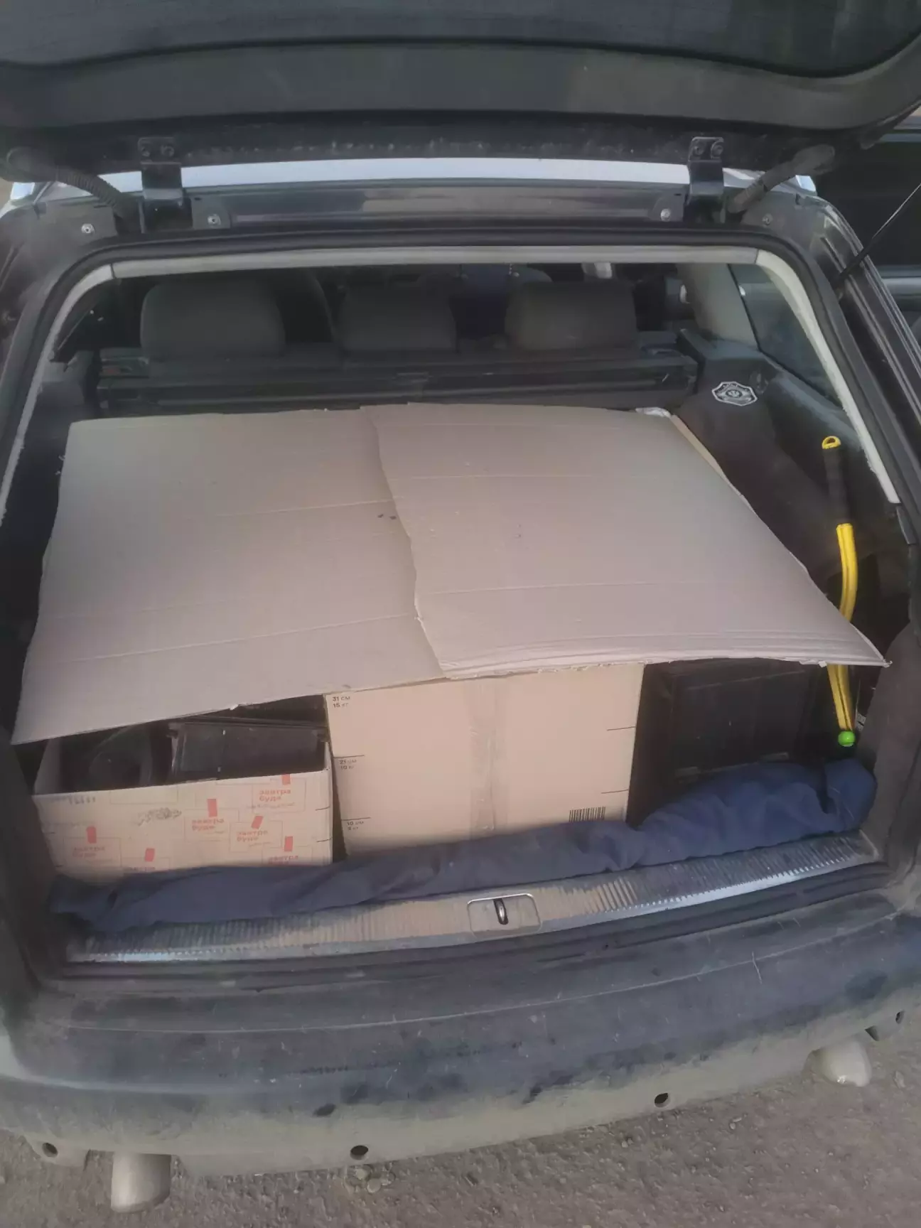 Безлад в багажніку треба чимось прикривати і певний час цим "чимось" була розрізана коробка.