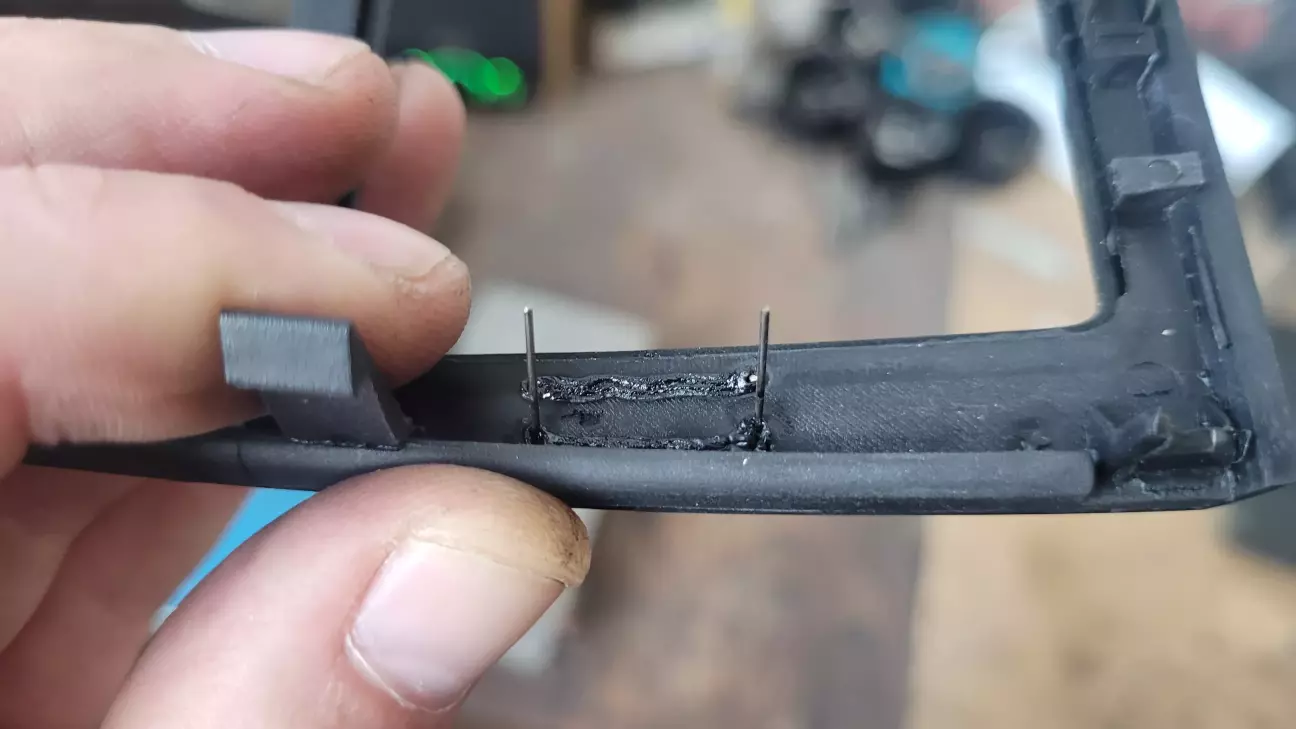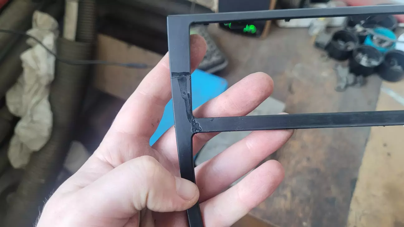 Рамка поломана в двох місцях, проклеюємо і впаюємо скоби