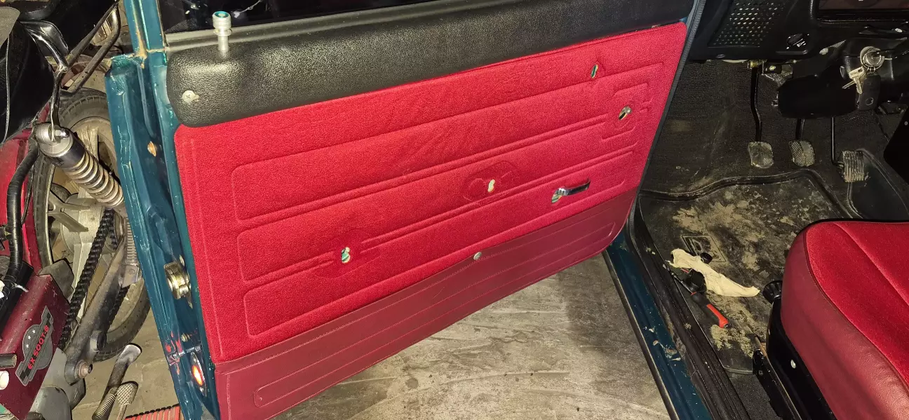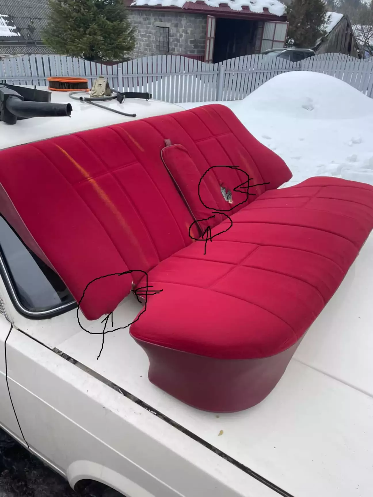 Продовжуючи попередній допис, з білої сімки 1988 року я забрав собі і югославський велюровий червоний салон (сидіння, задній диван з спинкою і дверні карти).
