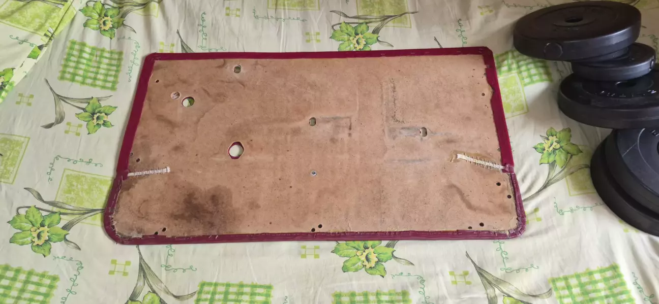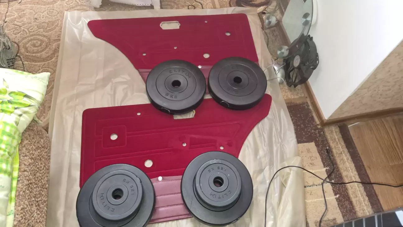 Після підсихання велюру, затискаю гантелями місця які повело (нижня частина карт), будучи мокрими, під натисненням вони чудово розрівнюються