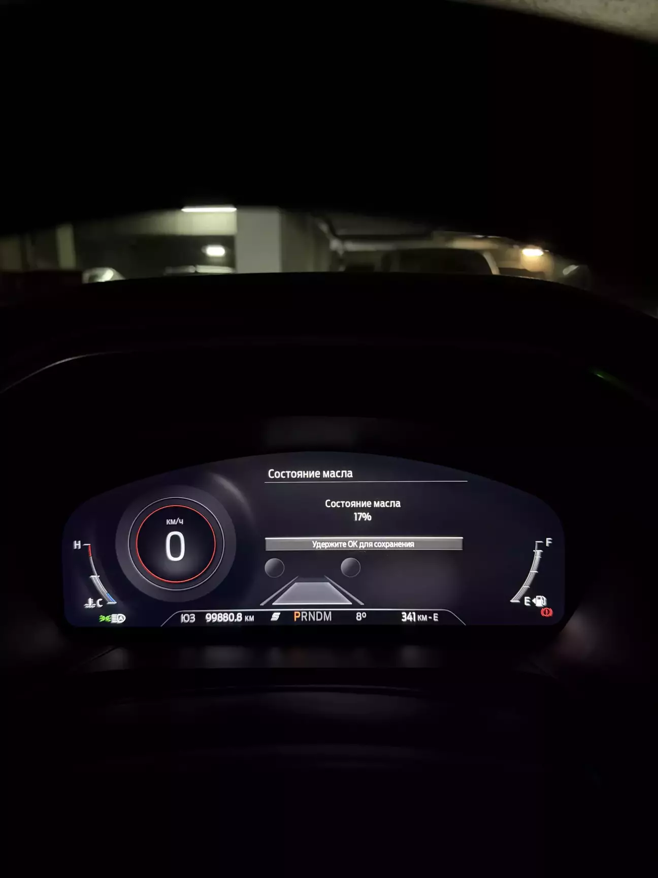 Помилка не критична, тому не пару днів їздив, до поки не заїхав на заправку. Залив до повного і не зміг завестись пару разів 🙄 . Окей, записуюсь на СТО на заміну. Стало цікаво, який там стан масла в машині, зайшовши в меню, чесно кажучи - здивувався, від останнього ТО проїхав 6500 км, стан масла 17%. Окей, записуюсь на СТО на заміну EVAP та одразу на ТО.