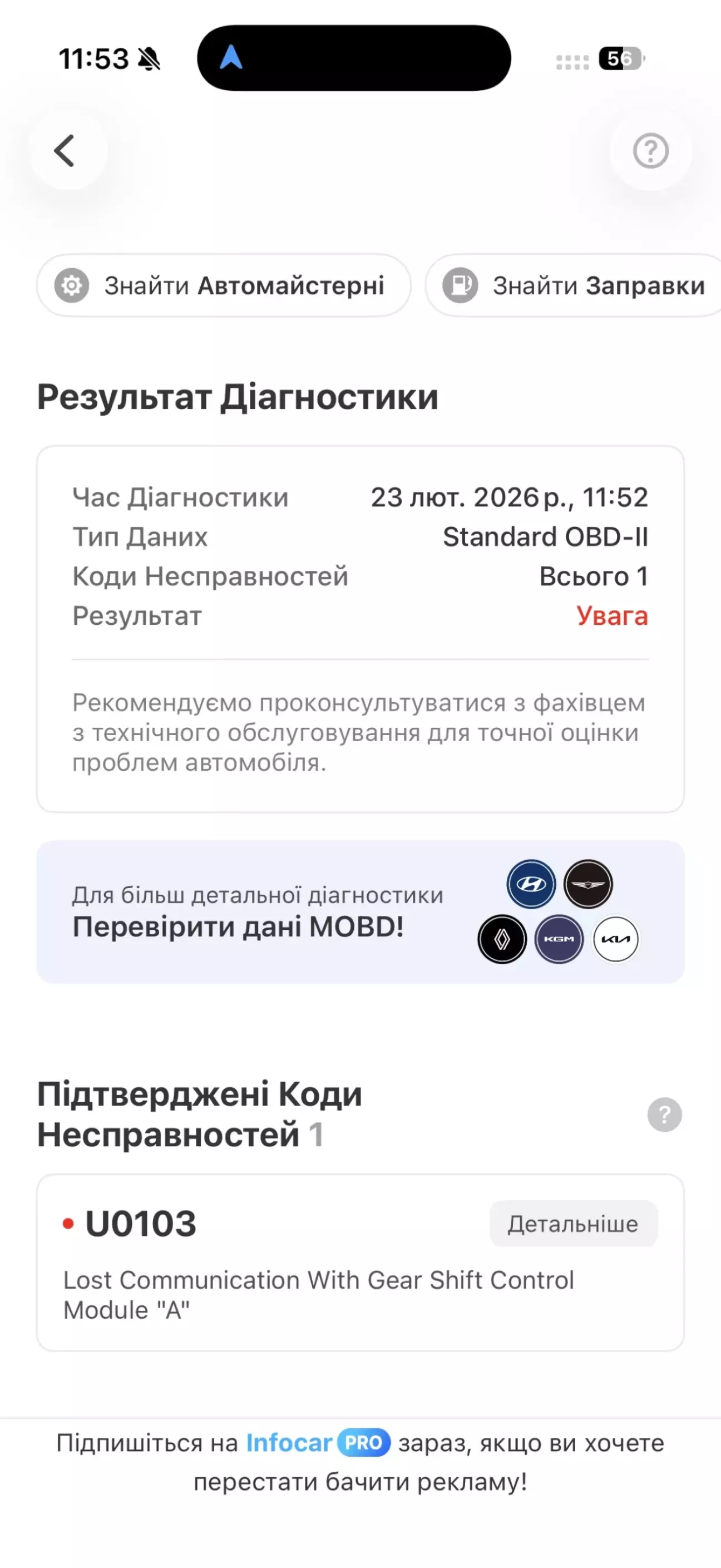 Був в машині якись дешевий обд сканер, почитав ошибки та отримав U0103