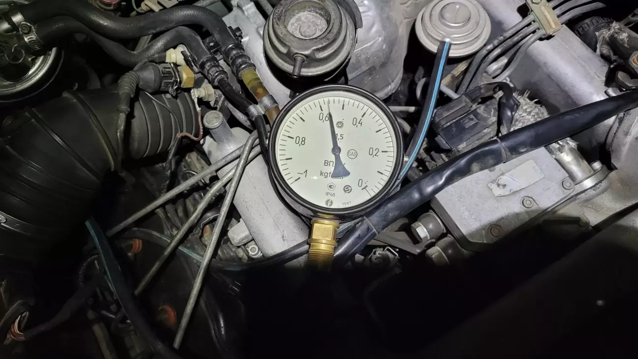 Не сподобалася поведінка авто, особливо на розгоні, так є з чим порівняти розумію що шось не так, самий перший замір це на заведену скинути вакуум з турбіни і глянути як швидко підіймає назад і тут проявився нюанс, підіймало довго, тобто не хватає вакууму, підключивши манометр бачу що вакуума не хватає, орієнтовна цифра фіксації вакуума -0,6, коли нехватає стрілка труситься в районі 0,5. Заміряв загальний вакуум а він ледь -0,7 набиває, при нормі -0,9. Орписовуємо систему, підсосів нема, приїхав сам вакуумний насос.