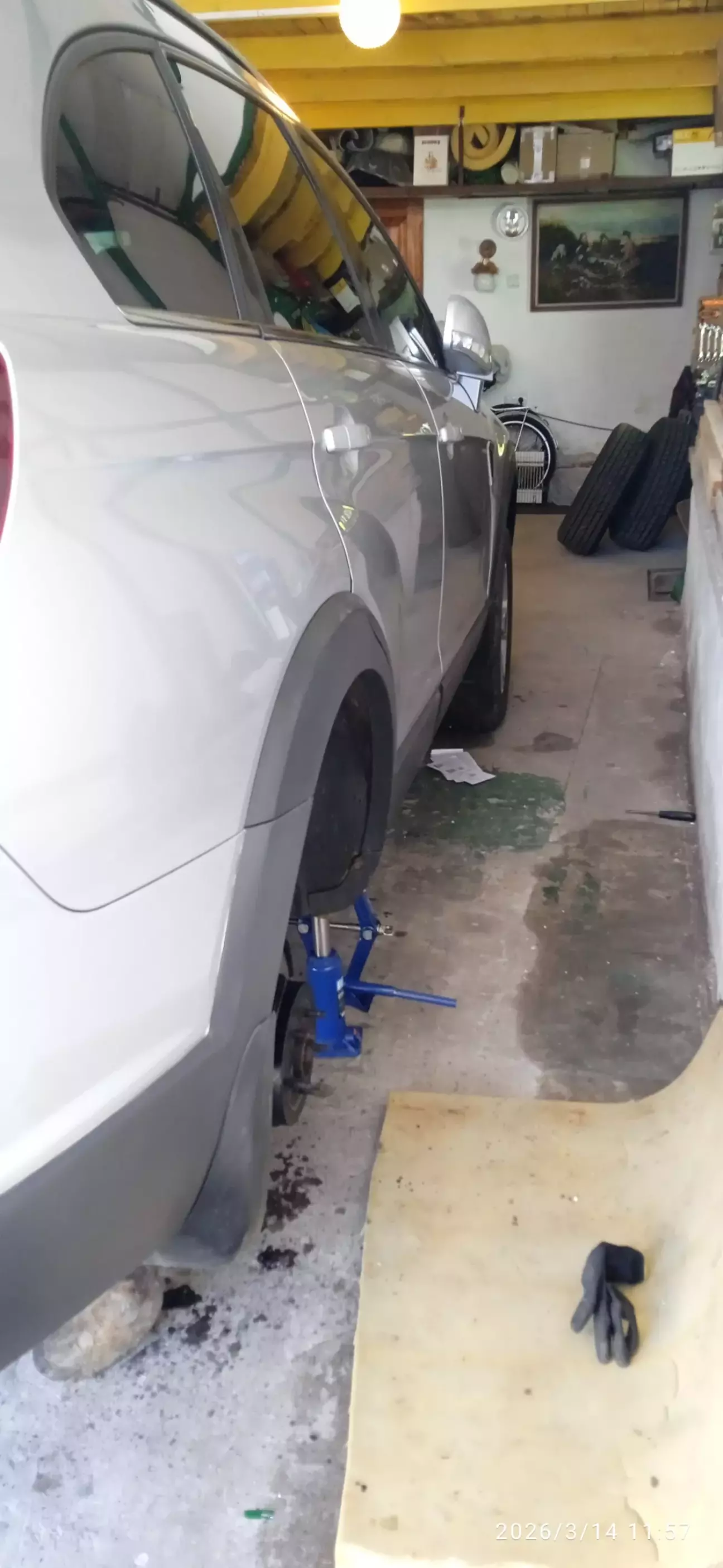 При замене комплекта дисков были проверены все тормозные суппорта, подвеска , покрашены суппорта и задуты антикором мастикой Zollex три арки с элементами ходовой ( на одну не хватило, позднее обработаю), заменены колёсные гайки на новые, вылржено в гараж куча не нужного из бардачков.
