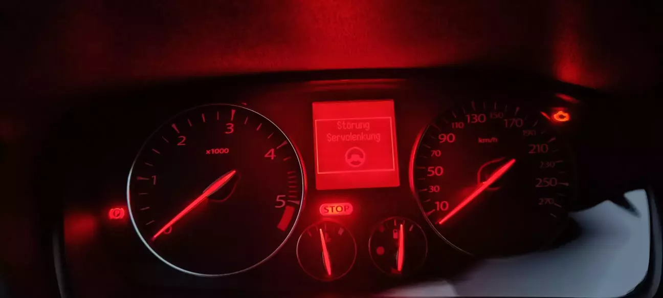Припаркував авто увечері з вивернутими ліворуч колесами. Наступного дня завівши автомобіль побачив наступну помилку . Нашою мовою воно звучить як " несправність підсилювача керма " .