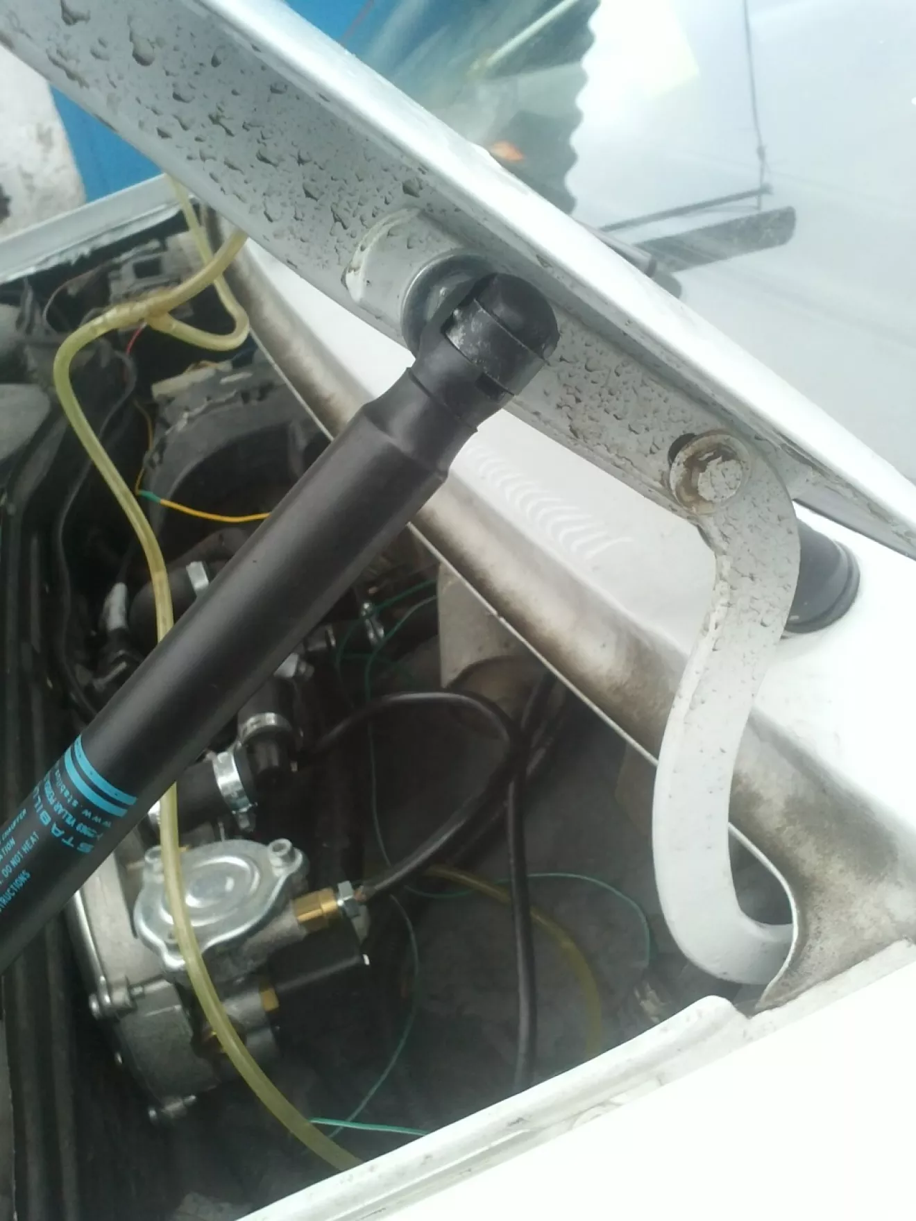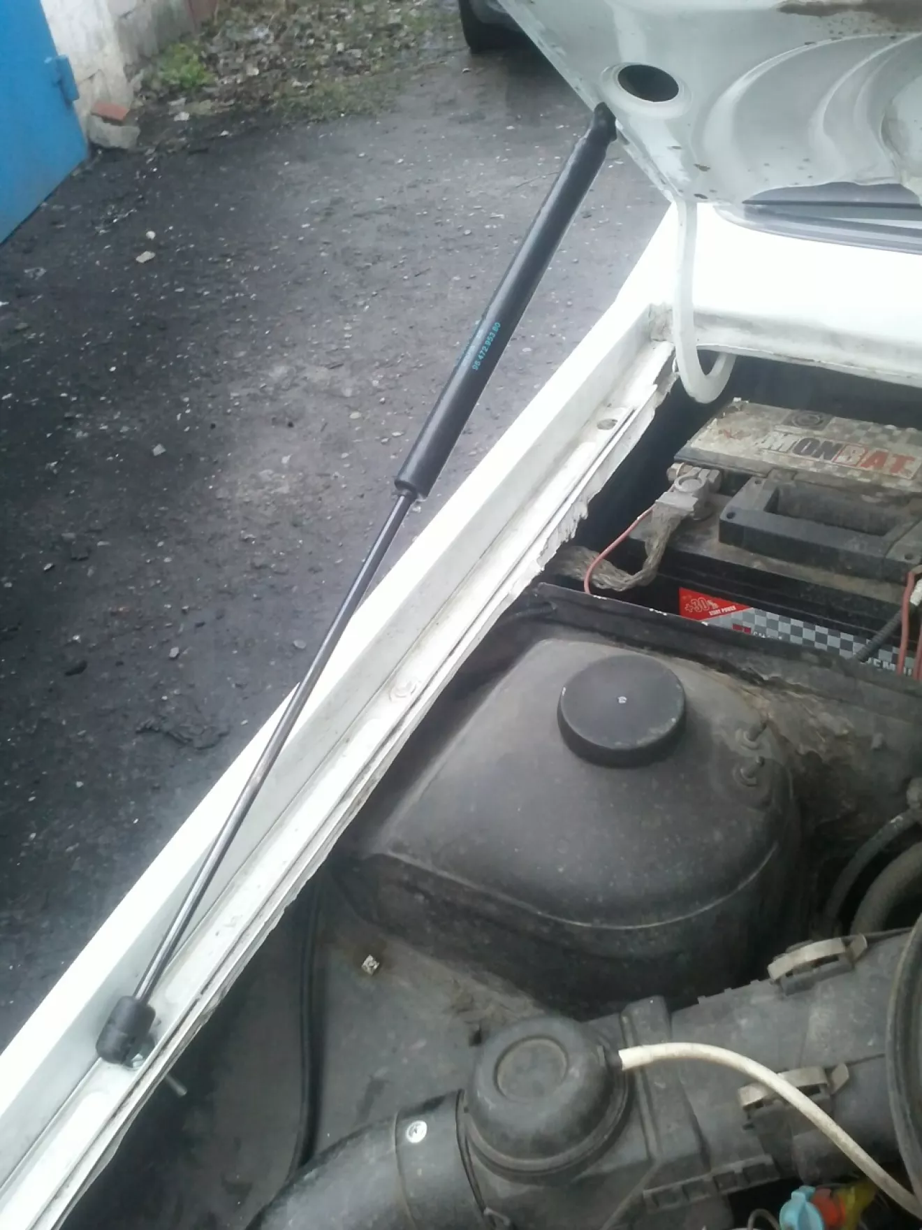 Всем привет! Очень давно ничего не писал, то телефон в ремонте, то работы много. Буду потихонечку рассказывать про продвижения. Как всегда доделывая авто ко мне подошел passatovodb3 и говорит что есть для меня ништяк! И достает две б.у стойки с какого то авто. Я давно хотел себе их внедрить на капот! примерял и все супер, по длине совпадают между креплением капота и крыла. Только на капоте пришлось рассверлить отверстие крепления и нарезать резьбу. Доработкой доволен как слон, стоики держат прошумленный капот отлично!