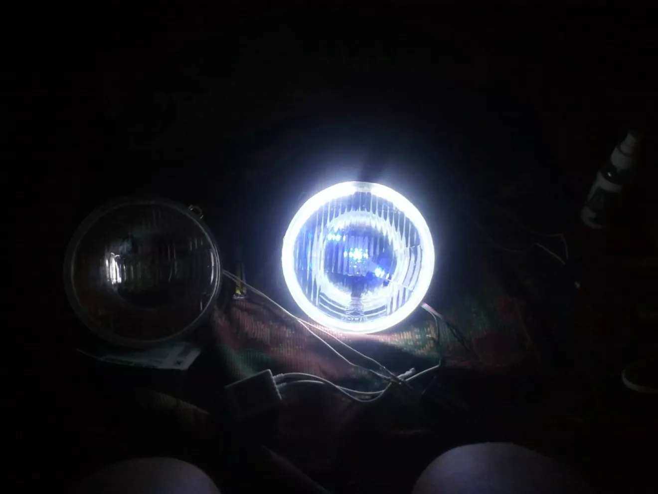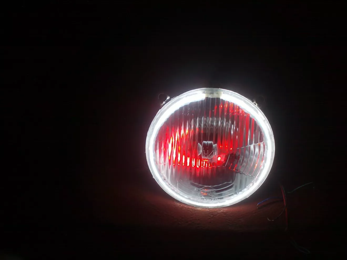 кольцо приклеил к стеклу, в фаре просверлил отверстие под провода. Стекло промазав специальным силиконом приклеил назад к фаре.