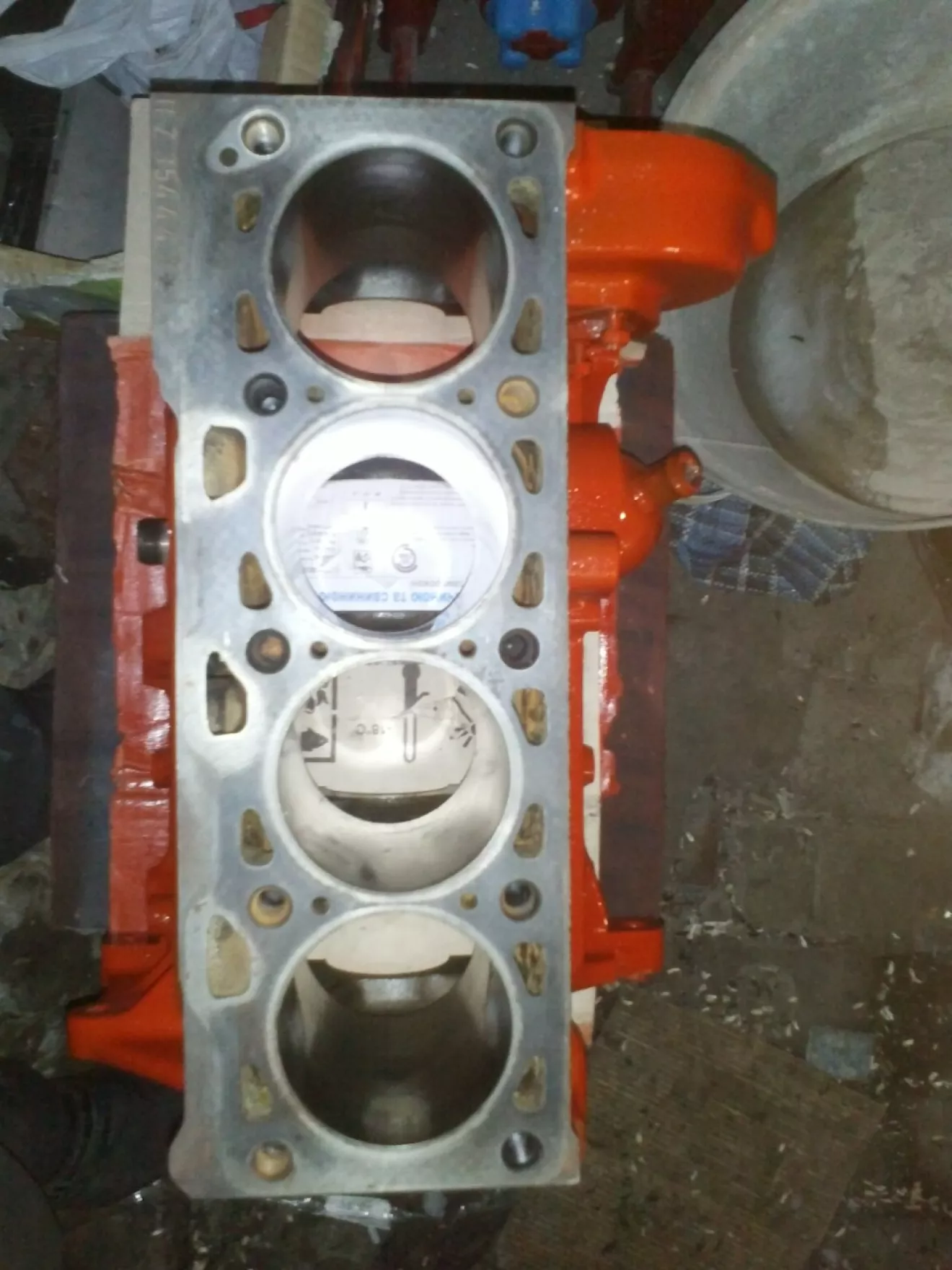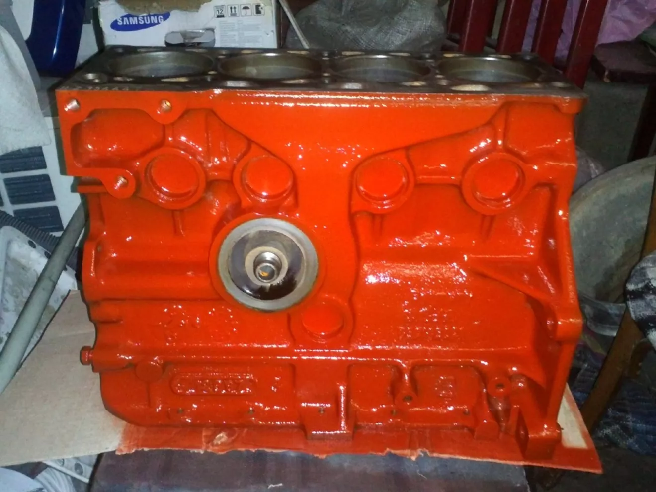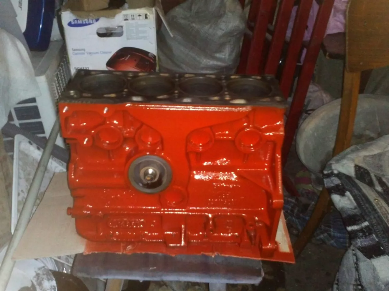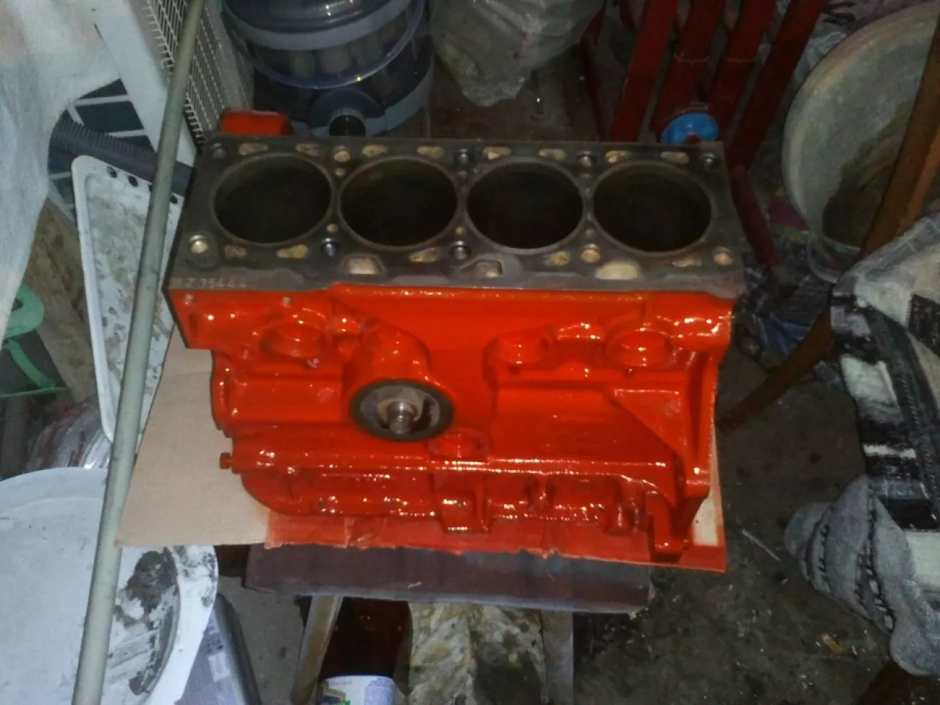 После того как разобрал двигатель, решил покрасить блок в красный цвет. Очень долго отмывал и чистил. перед покраской все обезжирил и нагрел блок на буржуйке. Задувал с балончика огнеупорной краской. Результатом остался доволен. Далее предстоит сборка двигателя.