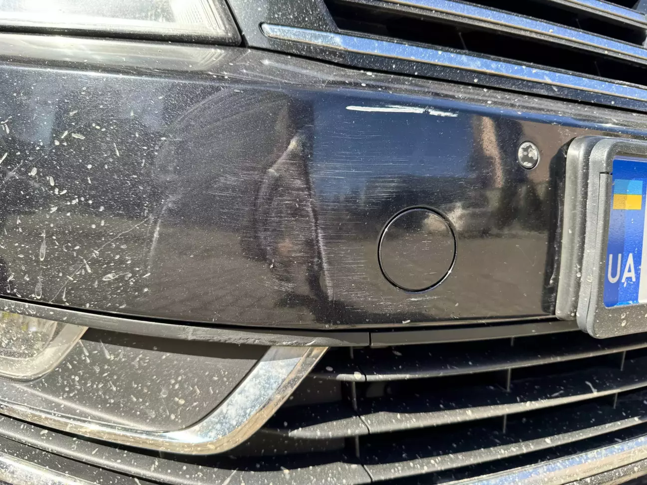 Але не без неприємностей. На парковці хтось заїхав в бампер і втік.😖 По камерах не вдалося визначити хто. Біла смужка це фарба з машини, яка в'їхала в пасата. Обідно і неприємно особливо від того, шо людина просто втекла і залишиться безнаказаною. Я за час володіння ніде авто я сам не пошкодив.