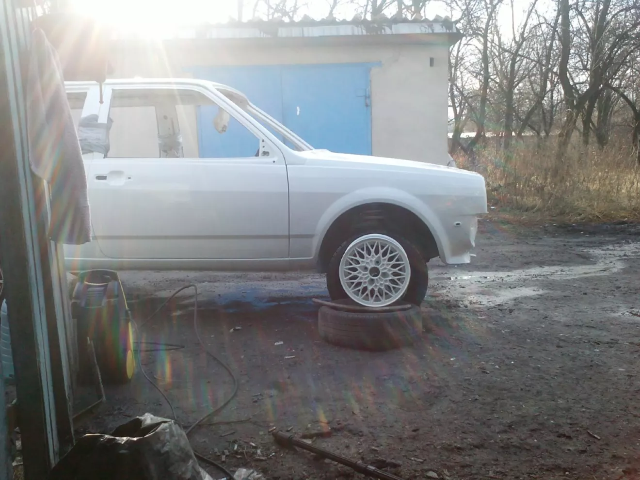 Все началось с того, что у тестя были старые легкосплавы. Он хотел их продать но не получилось. Глядя на них подумал, что если их выкрасить они будут круто смотреться на ласточке. Осталось дело за малым выклянчить их у тестя. В замен предложил сделать ему откосы, на что он согласился.