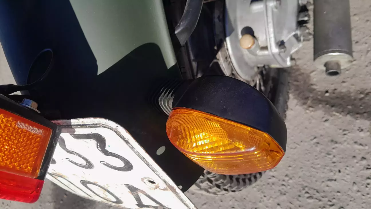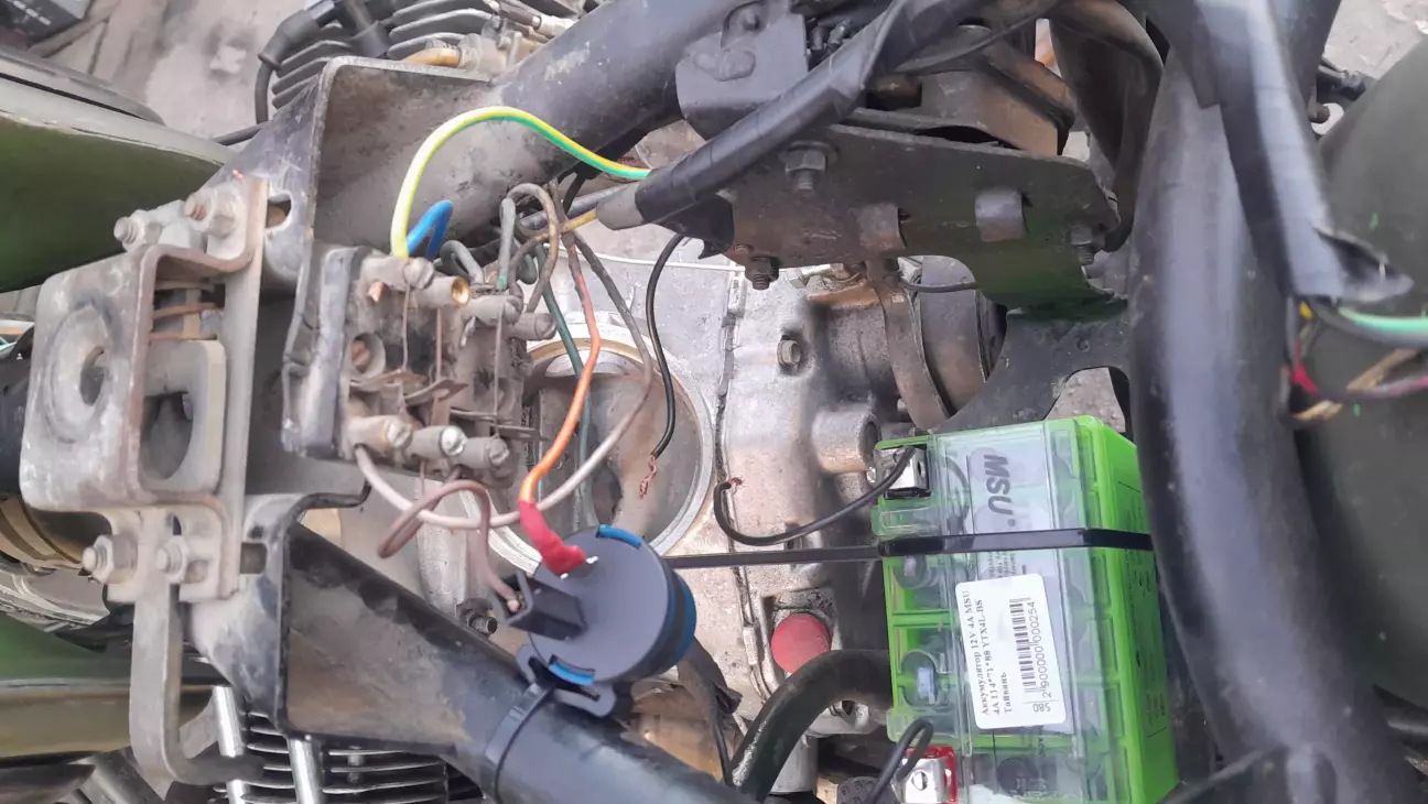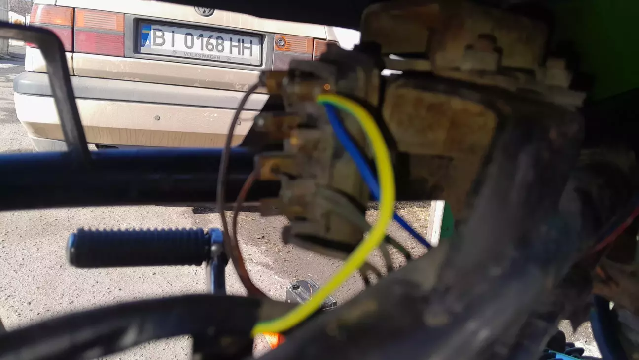 З поворотами біда: в схемі немає реле, не підключені задні повороти, в них повиривані провода. Купив явовські, переробив кронштейн кріплення, реле з китайського мопеда. Принципова схема підключення: