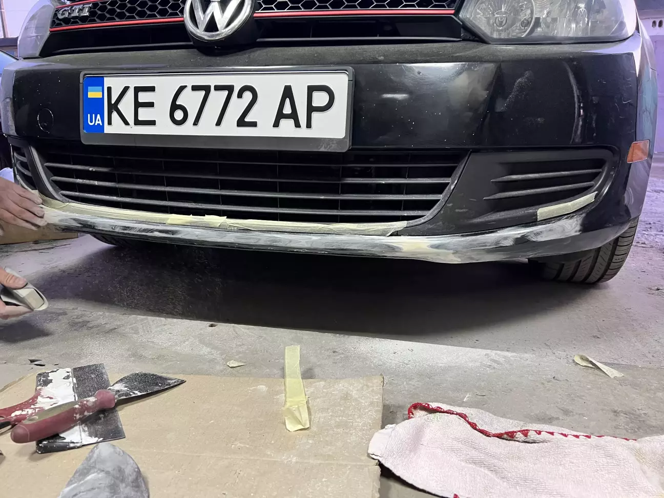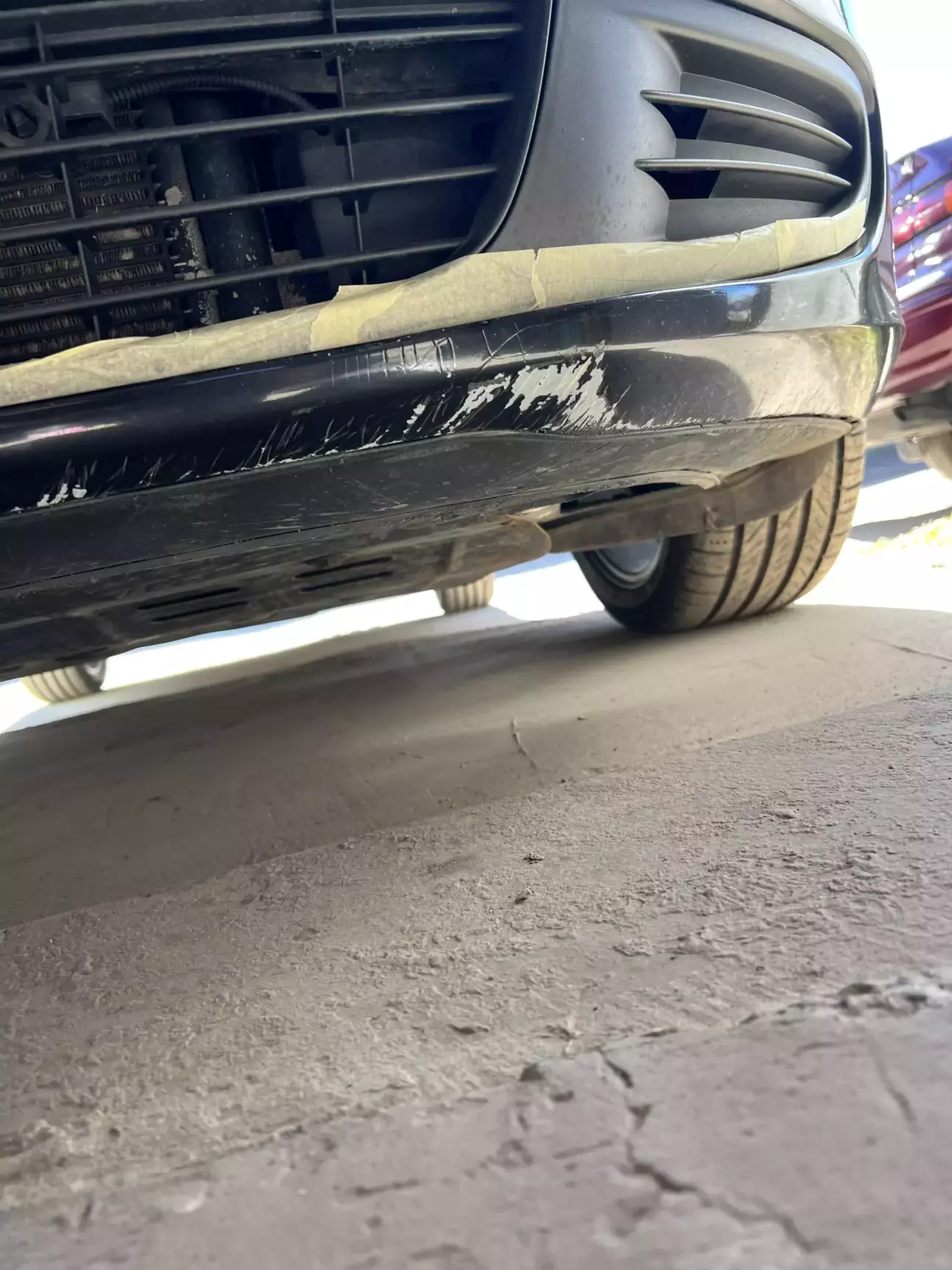 З момента придбання бампер був дуже сильно покоцаний знизу. В цілому по всьому бамперу є цятки, але знизу прям потужно. То в гаражі власними руцями вийшло зробити чуть гарніше)