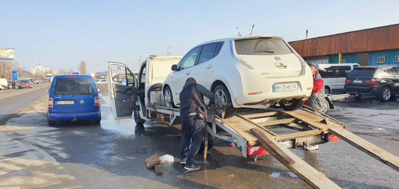 Машина находилась в белой церкви. Планируя путь и доставку пришел к мнению, что туда на автобусе, оттуда на Эвакуаторе