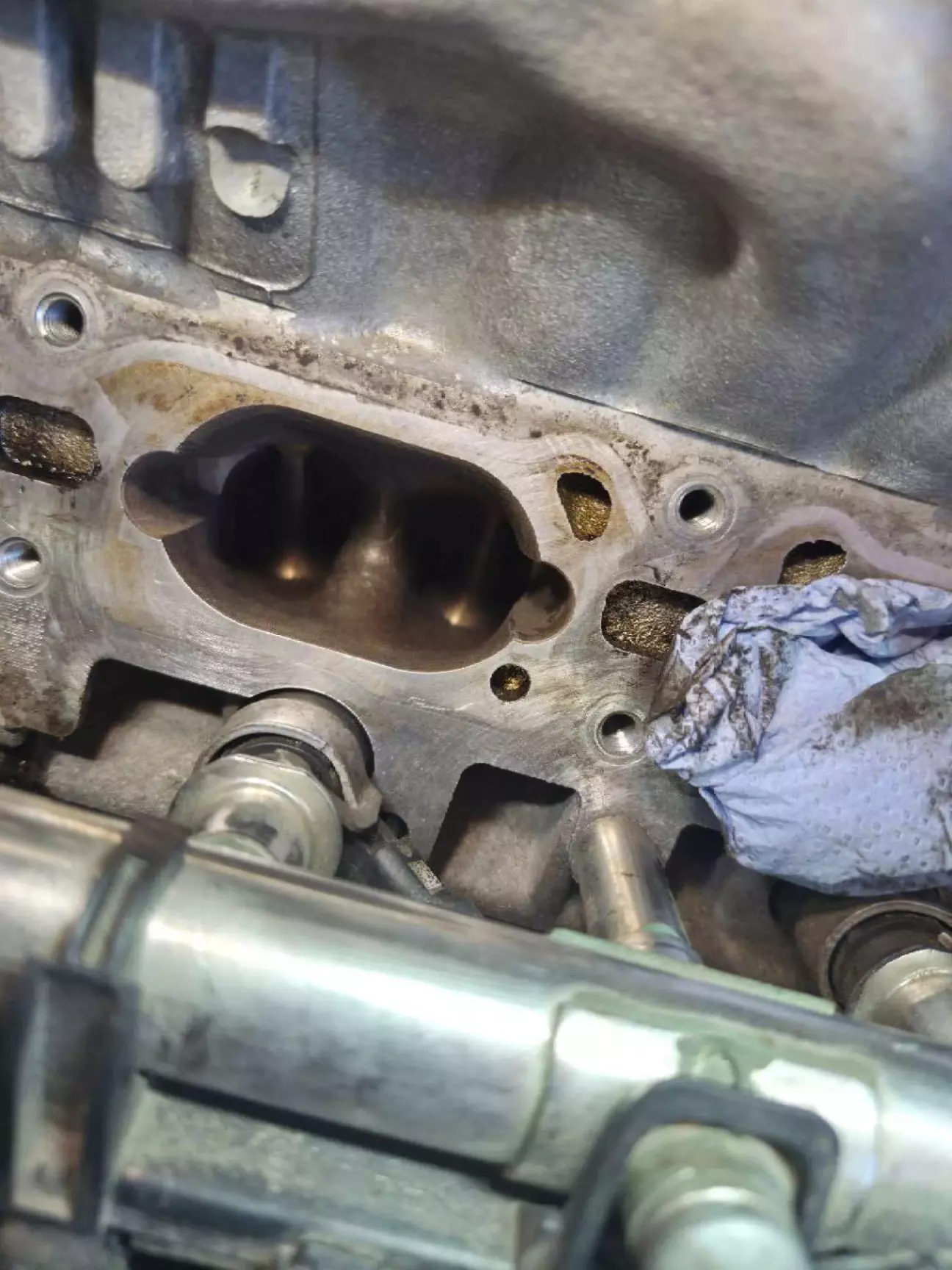 Почалось все з того, що я почав спостерігати велику витрату мастила. Знявши inlet pipe (впускний патрубок) я побачив там калюжу з мастилом. Спочатку я вирішив, що можливо КВКГ Borsehung вже перестав виконувати фукнцію маслянного сепаратора та замінив його на орігинальний КВКГ 06K 103 495 BM. Витрата мастила, через деякий час, почата тільки збільшуватись. В кінці кінців дійшовши до показника ~1л на 1000км. Далі зробив ендоскоп, у першому циліндрі було багато нагару , та порівняно невелика кількість нагару у другому циліндрі, 3й та 4й цилиндр були повністю сухими (можна сказати ідеальними). Сальники клапанів всі у нормі, задирів не має (що не може не радувати).