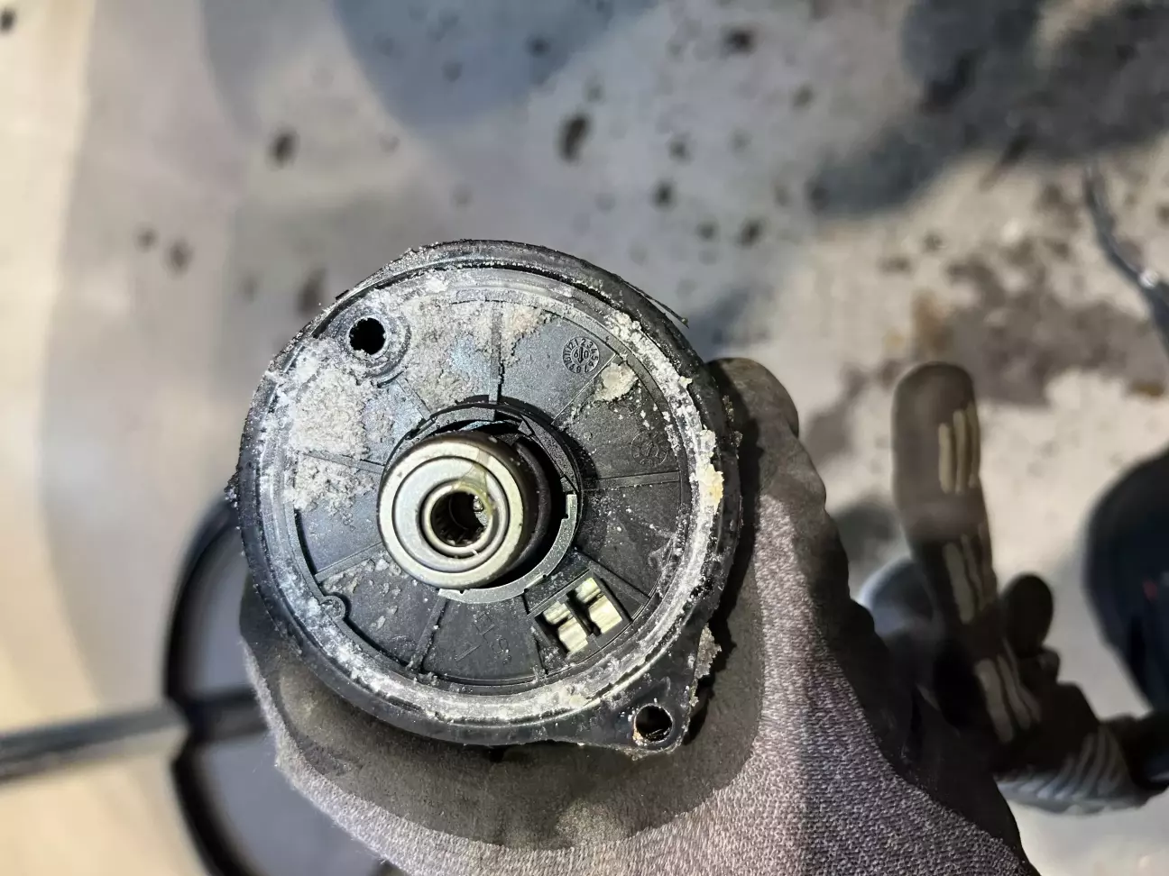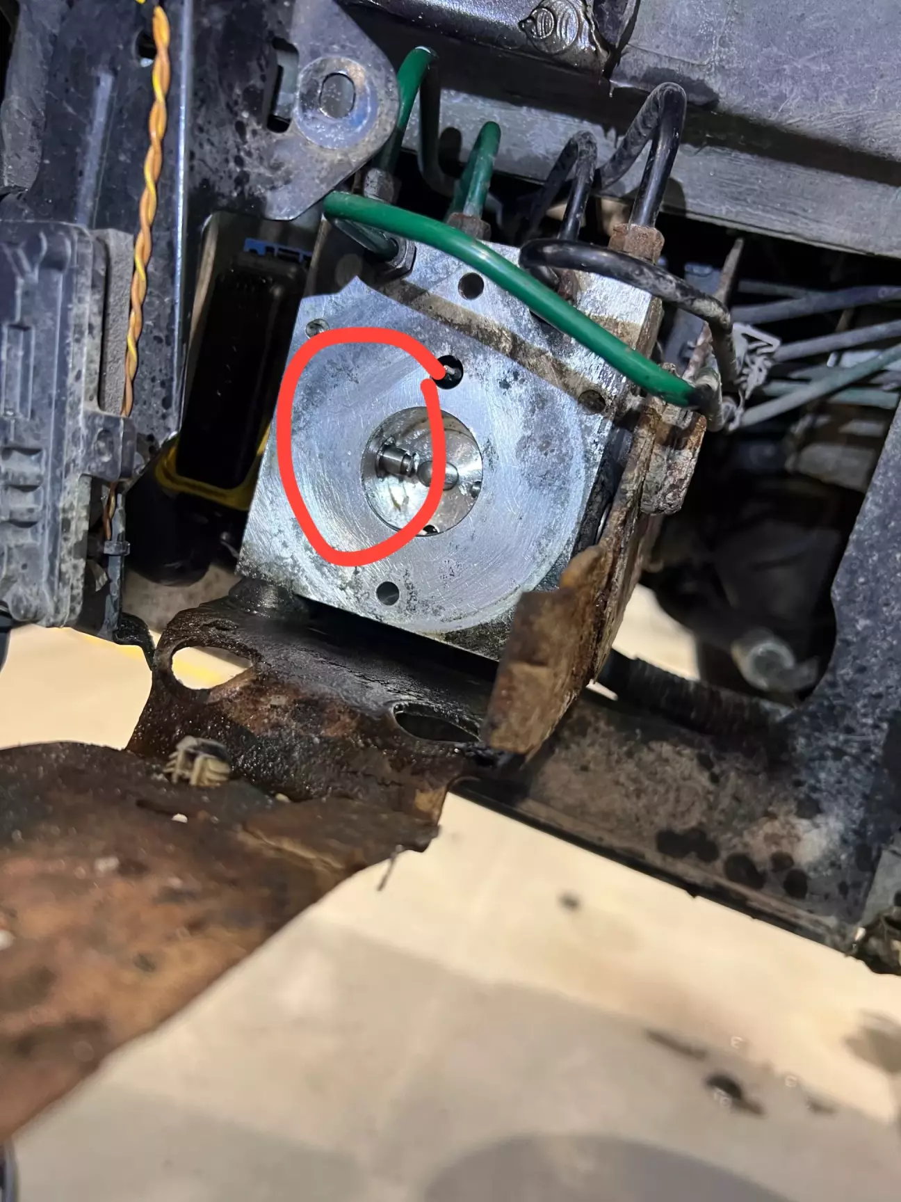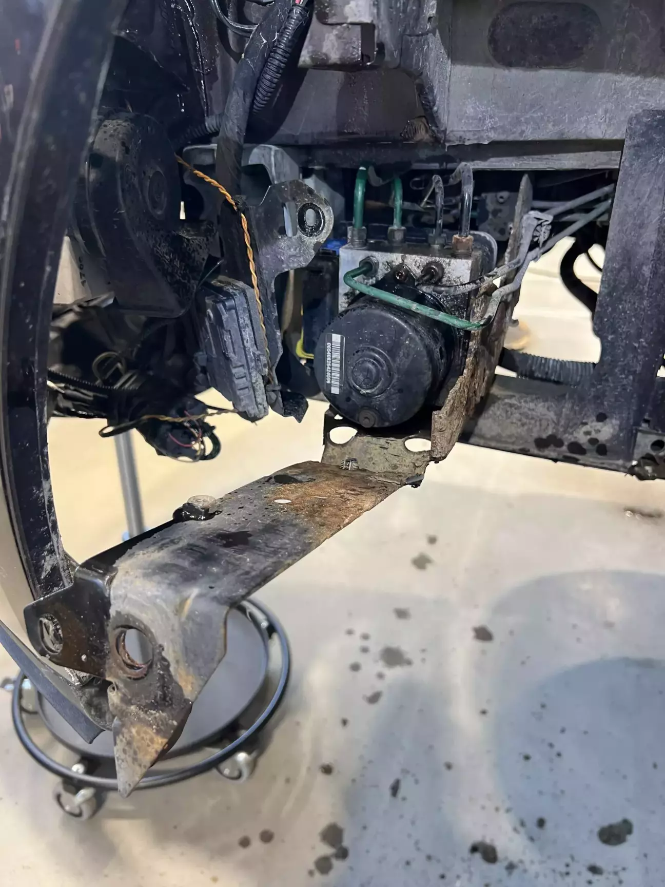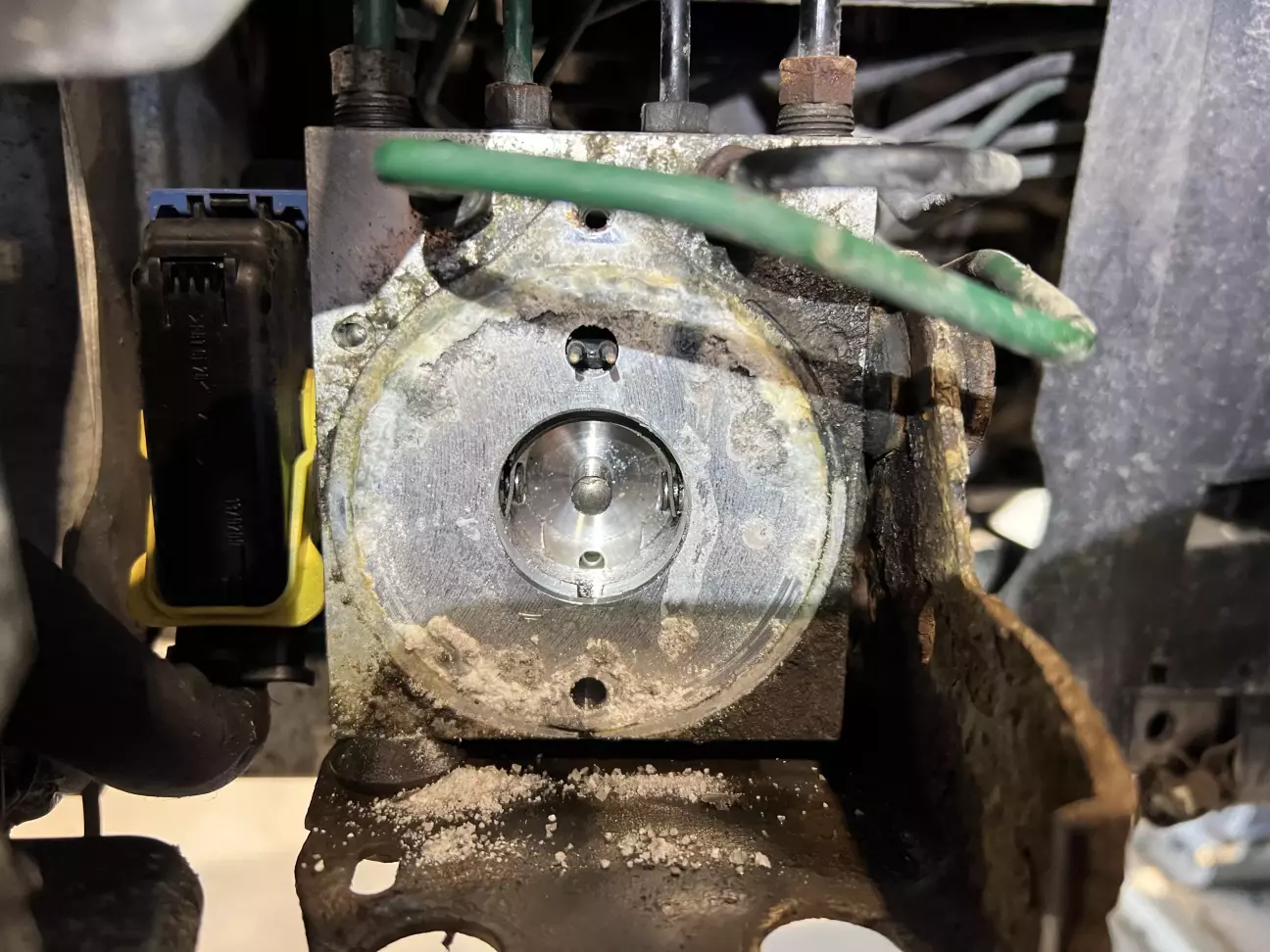 Помилка по двигуну- зазвичай закисші плунжера на моторі блоку ABS. Ліземо туди і пробуємо їх реанімувати. Добре, що я таки зміг розробити їх, а так би заміна блоку …По ремонту: розрізаємо кронштейн кріплення блоку ABS, знімаємо мотор, перевірив його подавши на нього 12 вольт. Тому пробуємо і розробляємо плінжера. Також побачив, що лопнуті задні і передня права пружина… передні недавно міняв, тому міняю одну( зрозуміло, що не по технології, але нехай буде знижка).