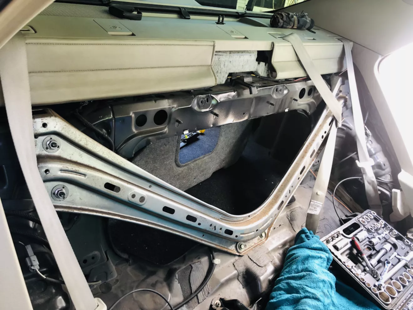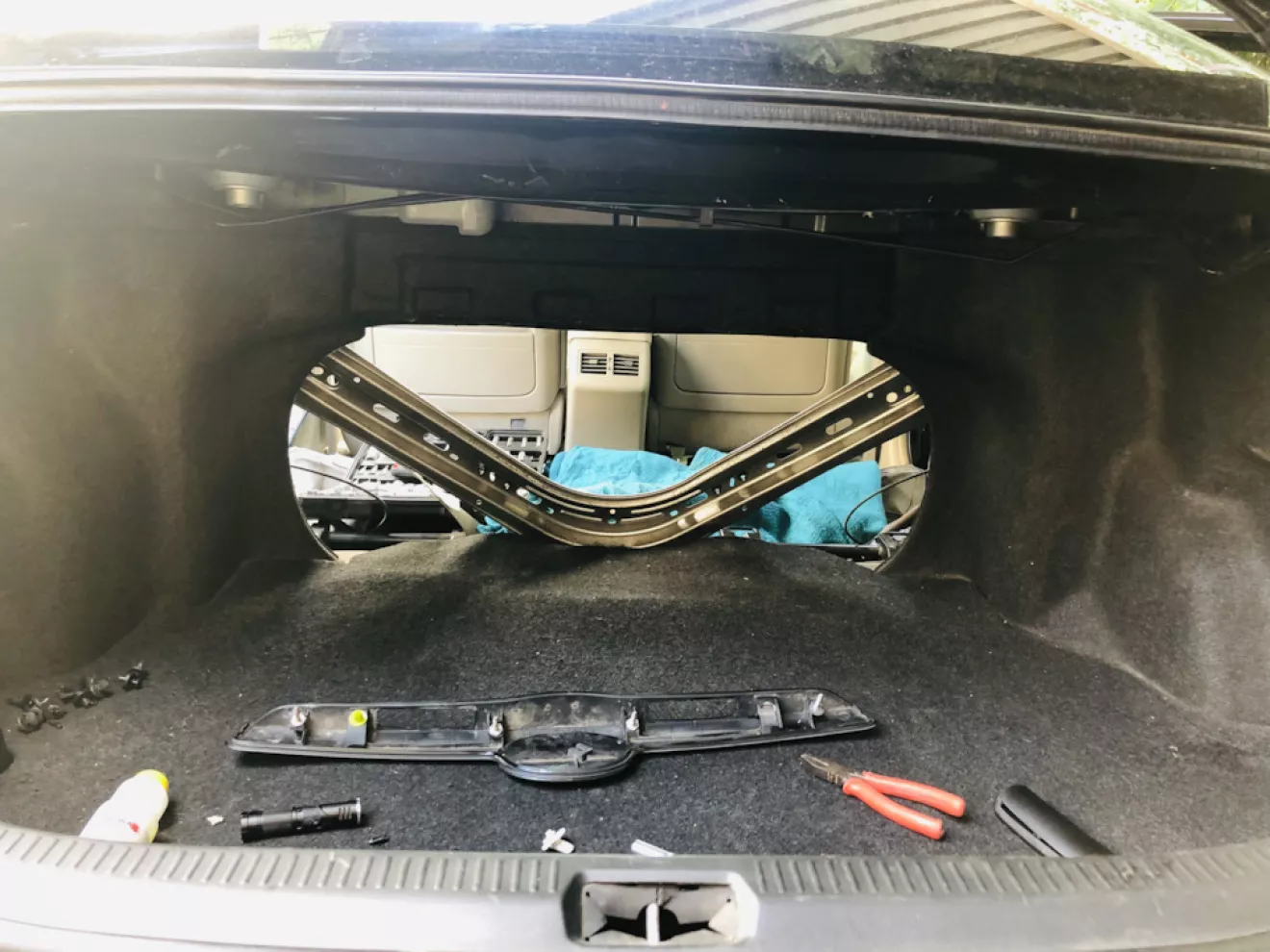 Пришлось ждать субботу и разбирать полностью задний диван чтобы про лезть в багажник снять обшивку ляды и добраться до замка