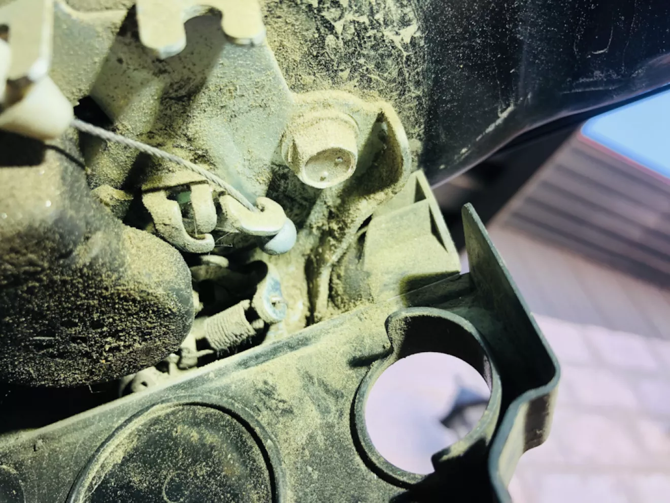 который я сразу увидел и достал, у меня были догадки что что-то попало так как рычаг открытия на половине стопорил.