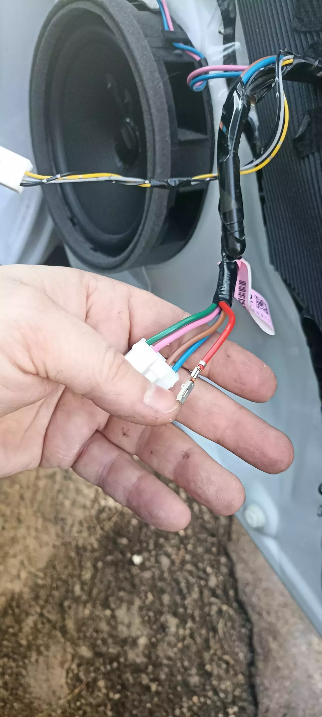 Сам хвоста підключення вивів внутрі ззаду дверей між самою накладкою та кожною обшивкою салону. Там як раз є невеличка прорізь.