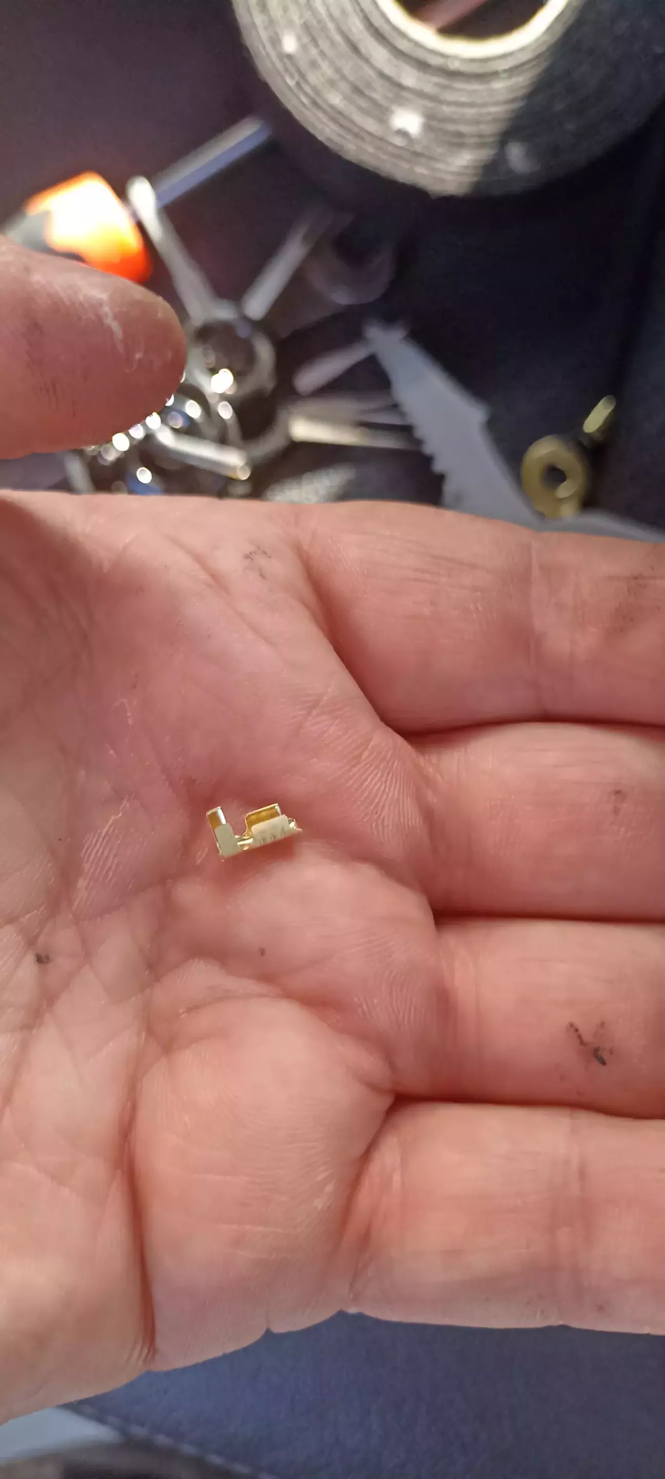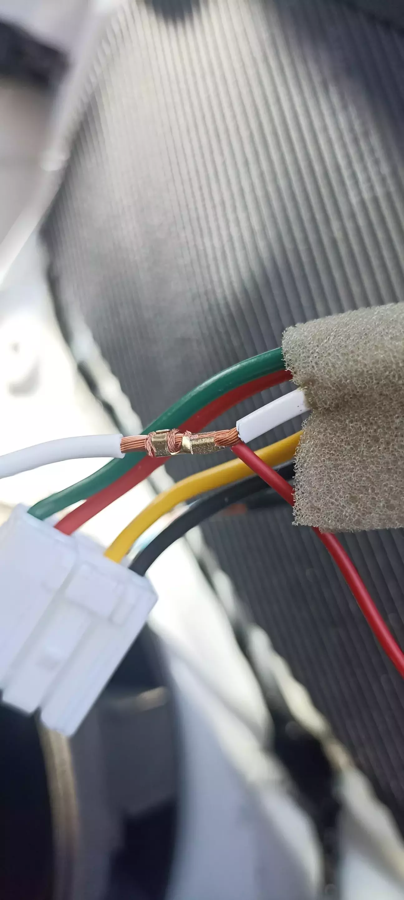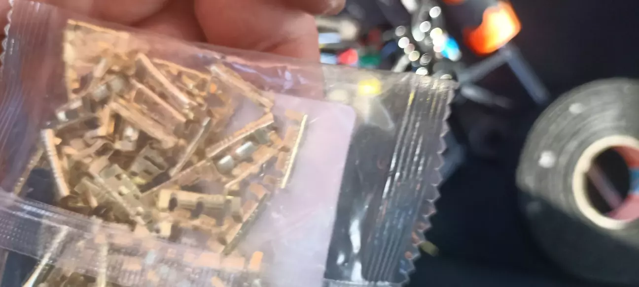 Витягнув провід з роз'єму. Зачистив його трошки вище роз'єму, пропустив крізь нього провід підключення для блоку. Скрутив та додатково обжав такими клемами (покупав їх теж на Алі та при обжимі просто розрізав навпіл)