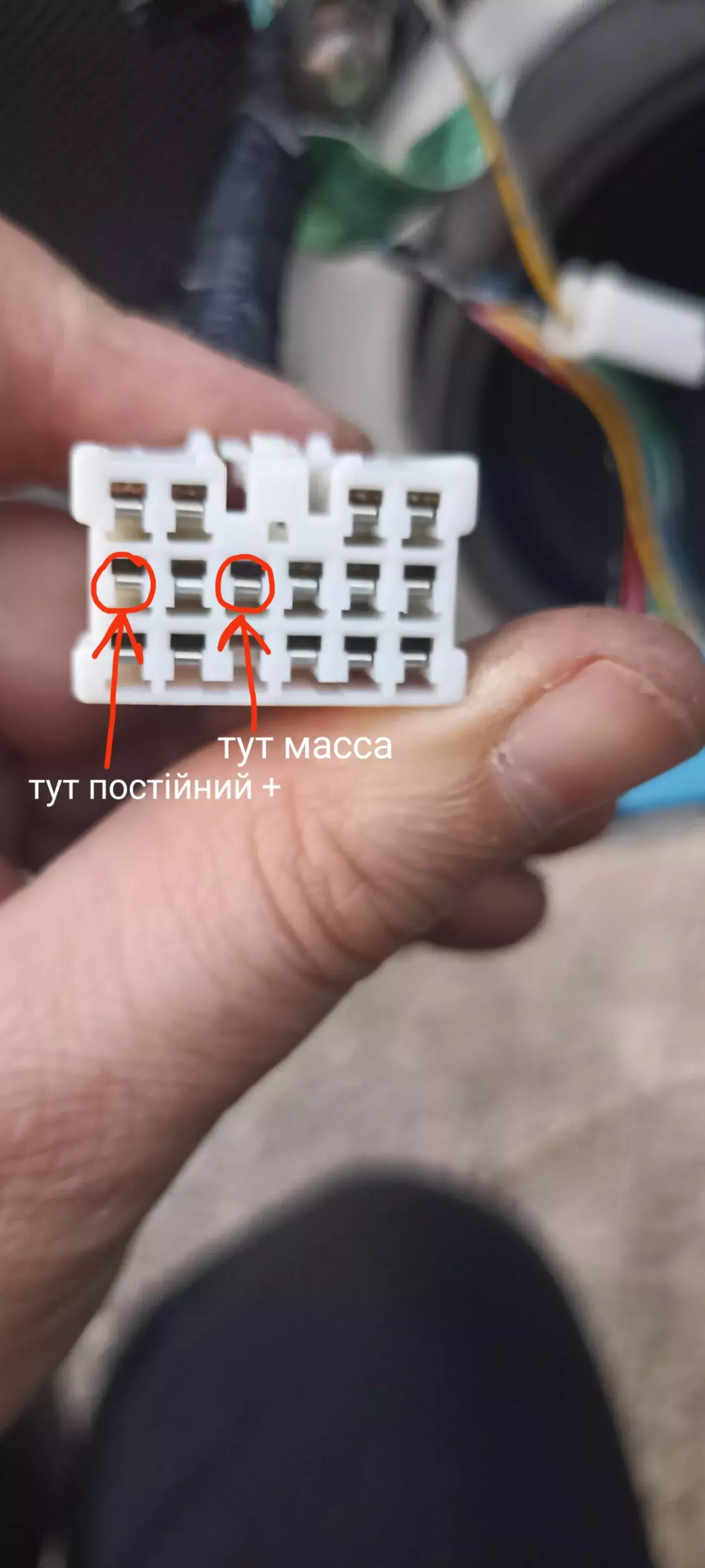 Взяв тестер, знайшов постійний +12, який з'являється при увімкненні запалювання (білий провод).