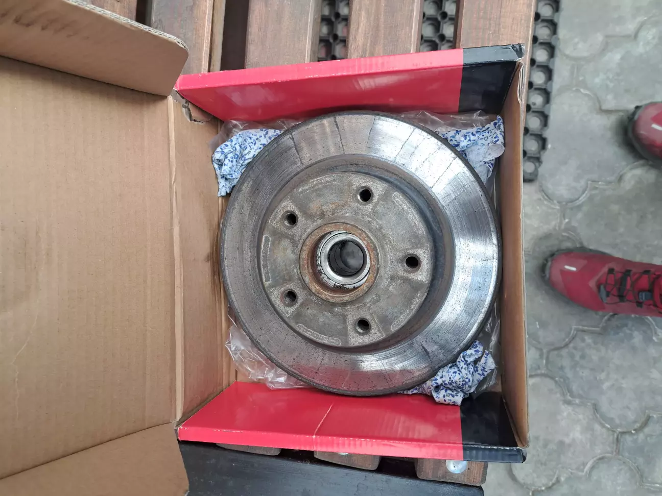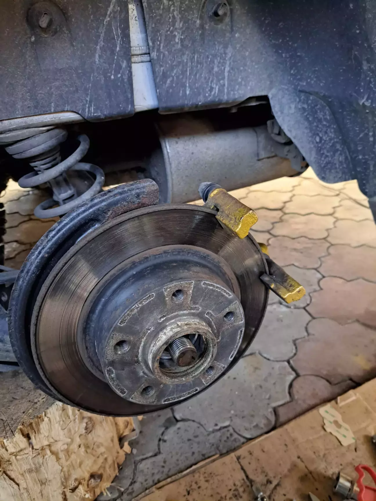 Прийшла весна і вже були заготовлені ще з зими задні гальмівні диски та колодки, на старих дисках залишок був трішки більше 6мл, хоча мінімальний залишок 7, нові ідуть 8мл, на правій стороні був люфт в підшипнику, в лівому просто гул.