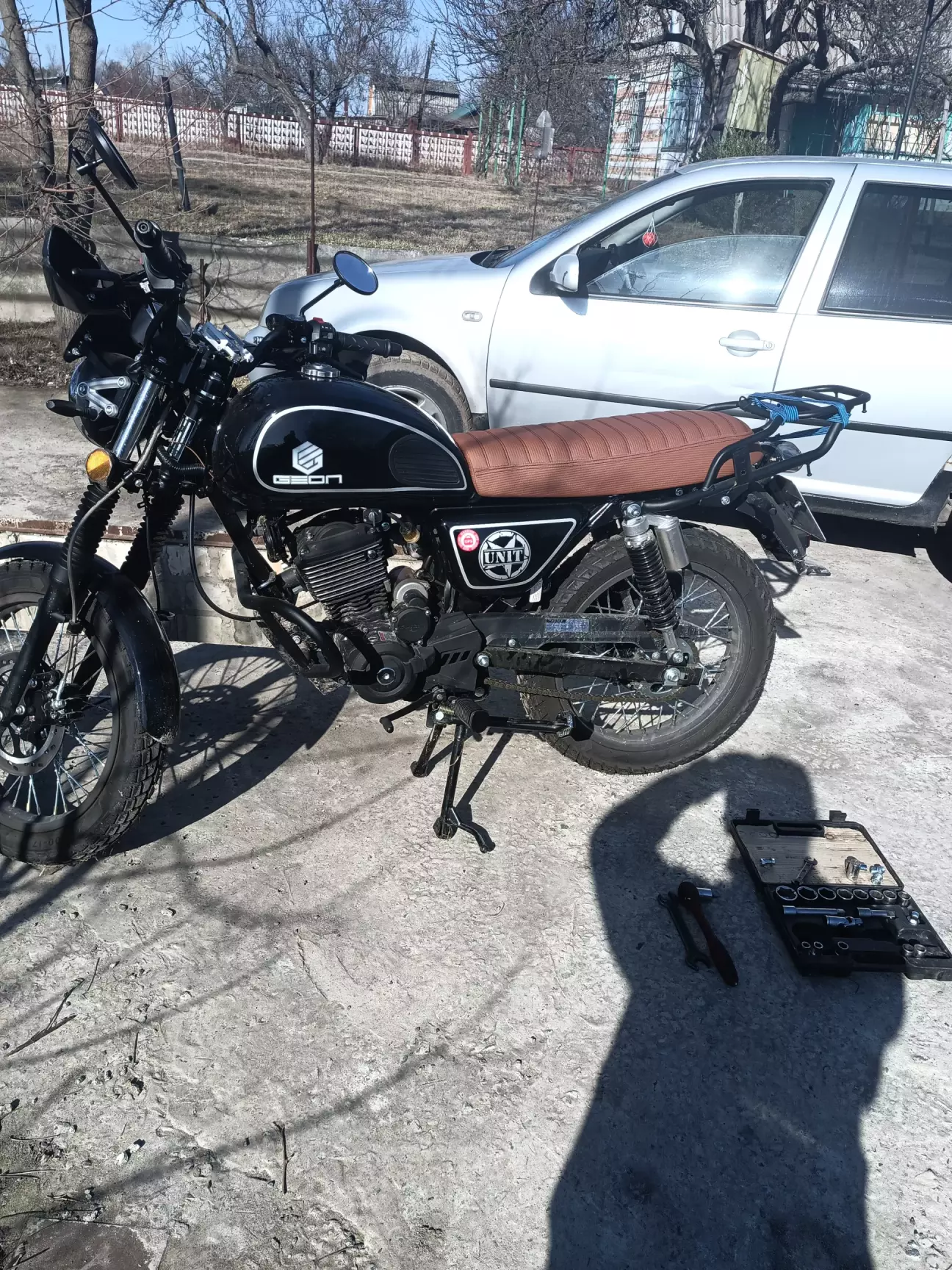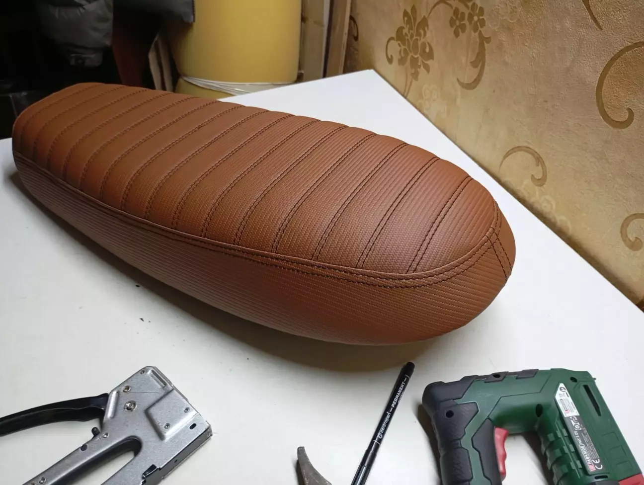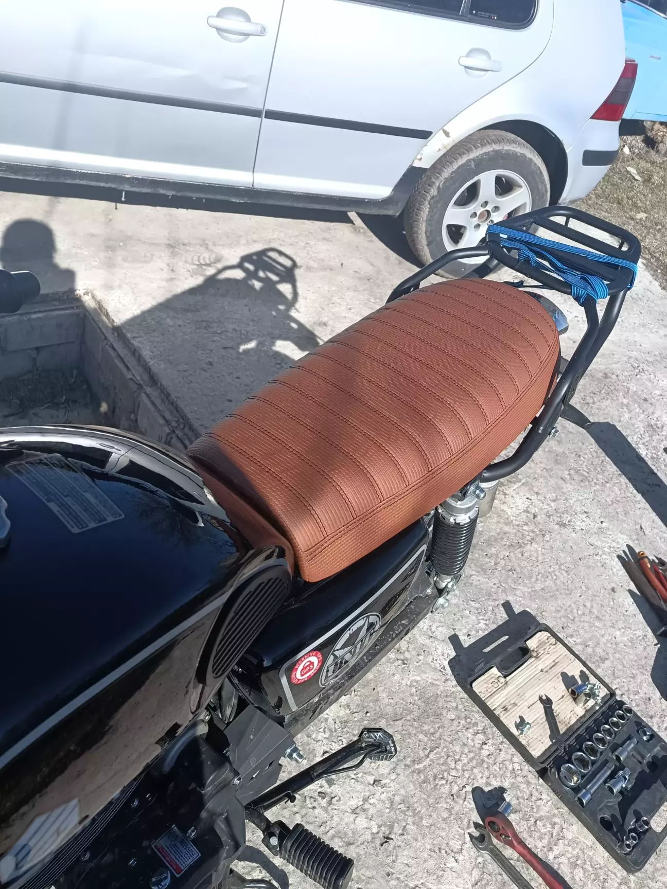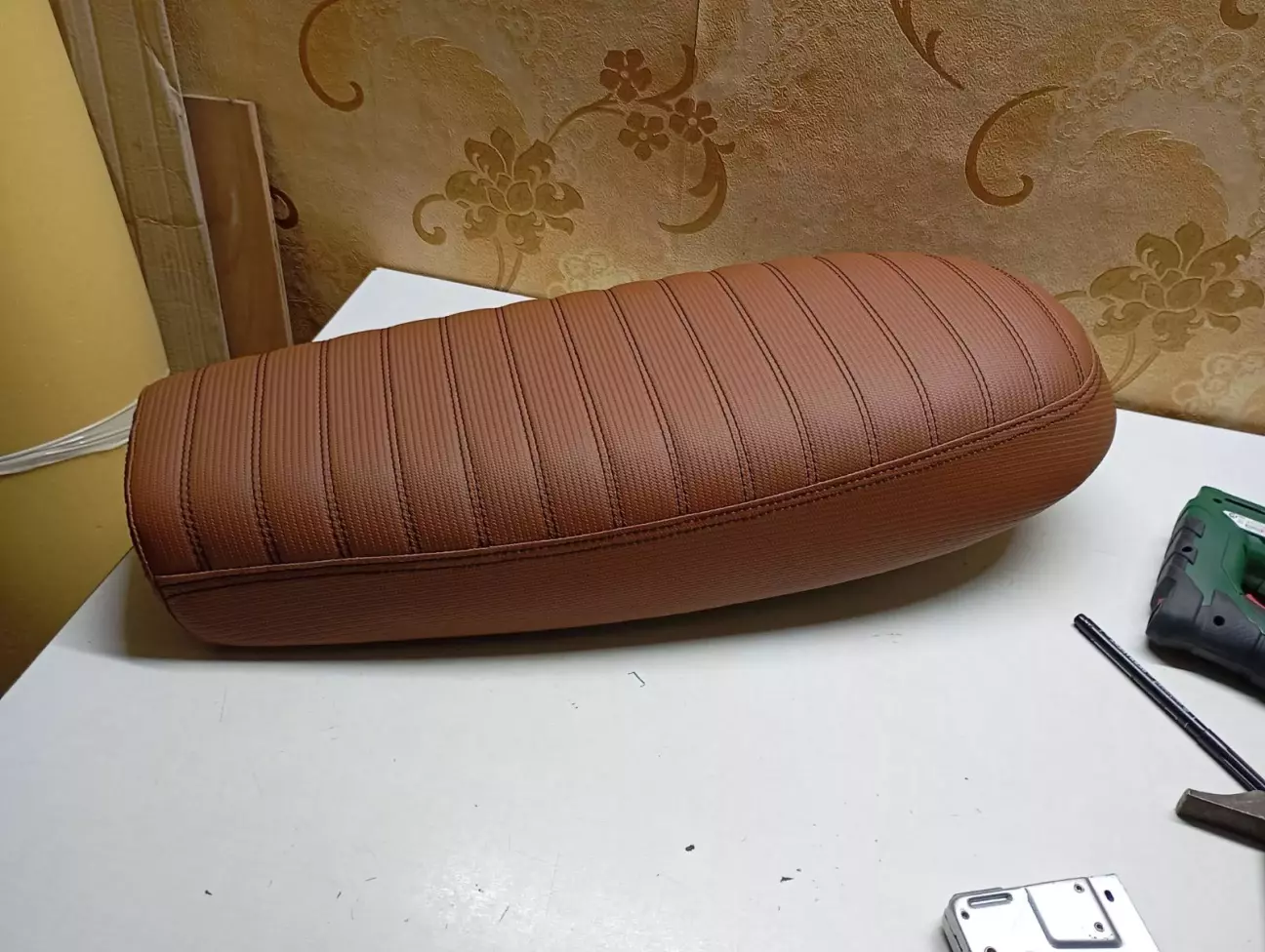 Вітаю вас друзі , було вирішено зробить мотоцикл в більш класичному виді .Для цього зняв майже всю навісну частину і змінив колір сідла методом перетягування .