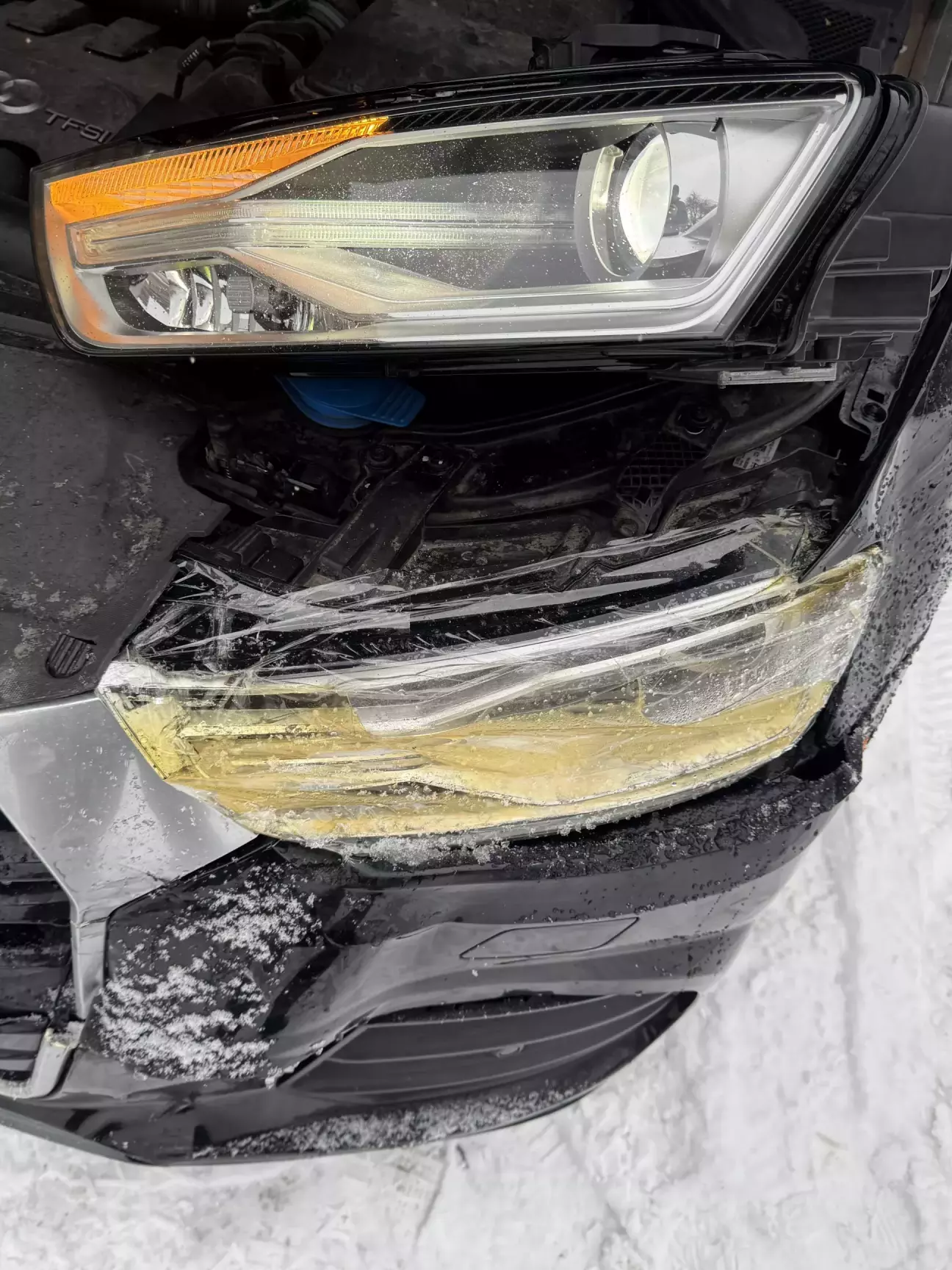 На фото удар у Audi Q3 виглядає несерйозним. Але після розбору список деталей під заміну значно більший, ніж здається на перший погляд.